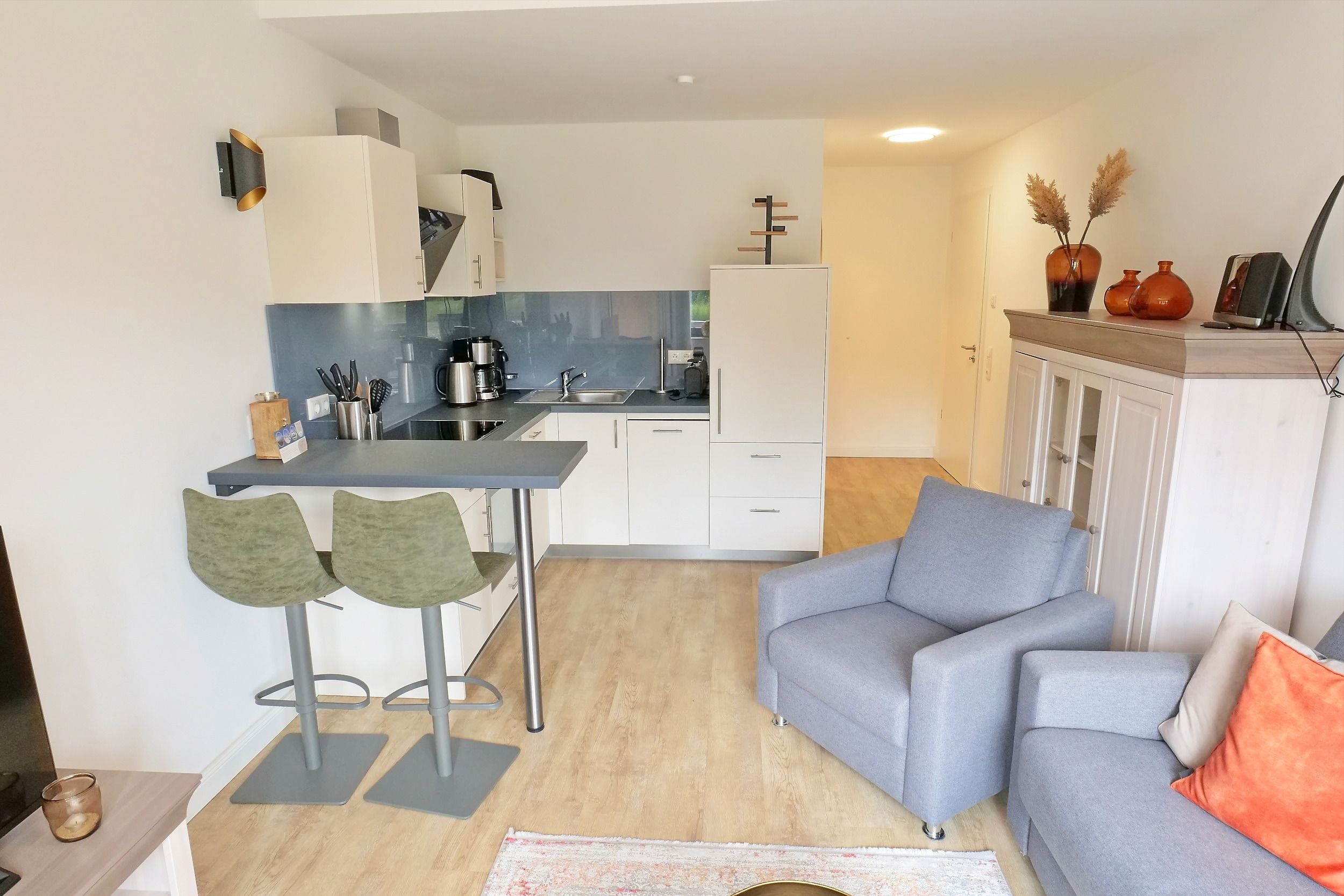 Die geräumige Wohnung bietet Ihnen 53m² Wohnfläche und ermöglicht somit einen entspannten Aufenthalt für bis zu 2 Personen. Der liebevoll eingerichtete Wohn-/Essbereich empfängt Sie hochwertig möbliert. Moderne Unterhaltungselektronik sowie kostenfreie WLAN-Nutzung sind selbstverständlich auch vorhanden.