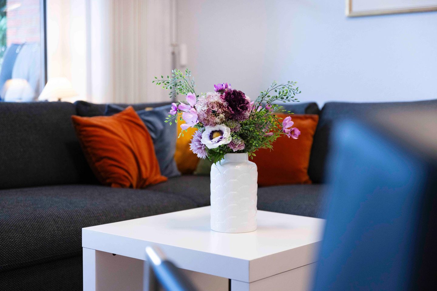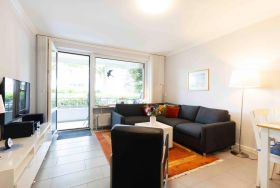 Travemünder Landstraße 4, Haus Hubertus, ca. 45 m², 2 Zimmer, Hochparterre, großer überdachter möblierter Westbalkon, Wohnzimmer mit Schlafcouch, Essecke, Smart-TV, HiFi-Anlage mit USB- und iPhone-Anschluss, WLAN, Schlafzimmer mit Doppelbett (1,80 x 2,00 m) mit separaten Matratzen, Smart-TV, Insektenschutz, Küchenzeile mit Herd und Ceranfeld, Backofen, Mikrowelle, Geschirrspüler; Dusche / WC, Pkw-Außenstellplatz, keine Haustiere, Bettwäsche und Handtücher bitte mitbringen oder gegen Gebühr vor Anreise bestellen.
