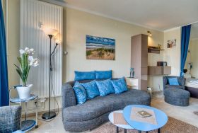 Diese 45 qm große Ferienwohnung in der 5. Etage des Hauses B bietet Platz für bis zu 3 Personen und ist komfortabel eingerichtet.