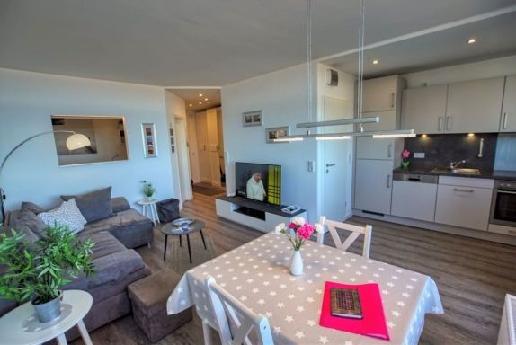Lage & Hinweise: Nichtraucherwohnung, keine Haustiere, nur ca. 300 m bis zum Strand, 30 m bis zur Ladenzeile und Aktiv-Hus mit Restaurants, Shops und Freizeitangeboten.