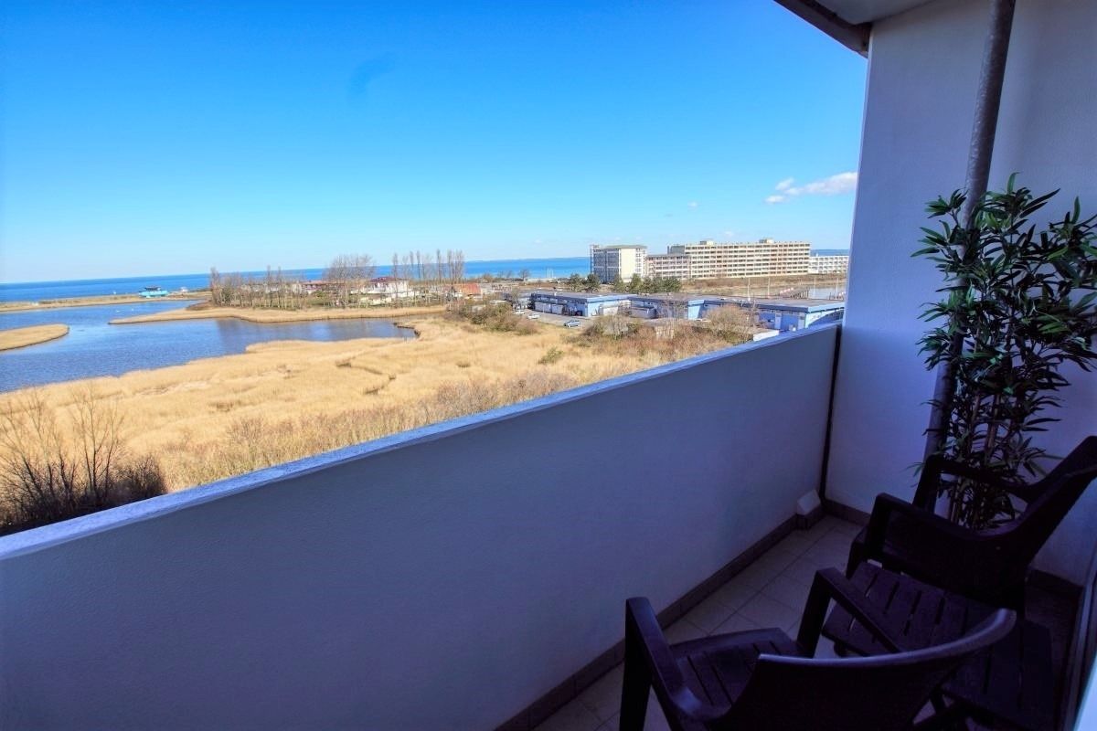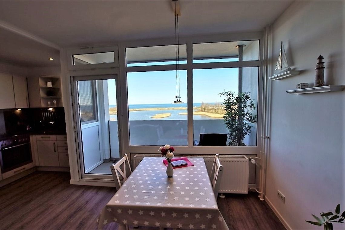 Diese Ferienwohnung im 5. Obergeschoss des Hauses C im Ostsee-Ferienpark Heiligenhafen bietet Platz für 2 Personen und überzeugt mit einem Balkon und traumhaftem Ostseeblick. Das separate Schlafzimmer mit Doppelbett, ein Wohnbereich mit Flachbild-TV sowie WLAN und eine großzügige Küche mit Backofen, Herd, Mikrowelle, Geschirrspüler und Kaffeemaschine sorgen für Komfort.