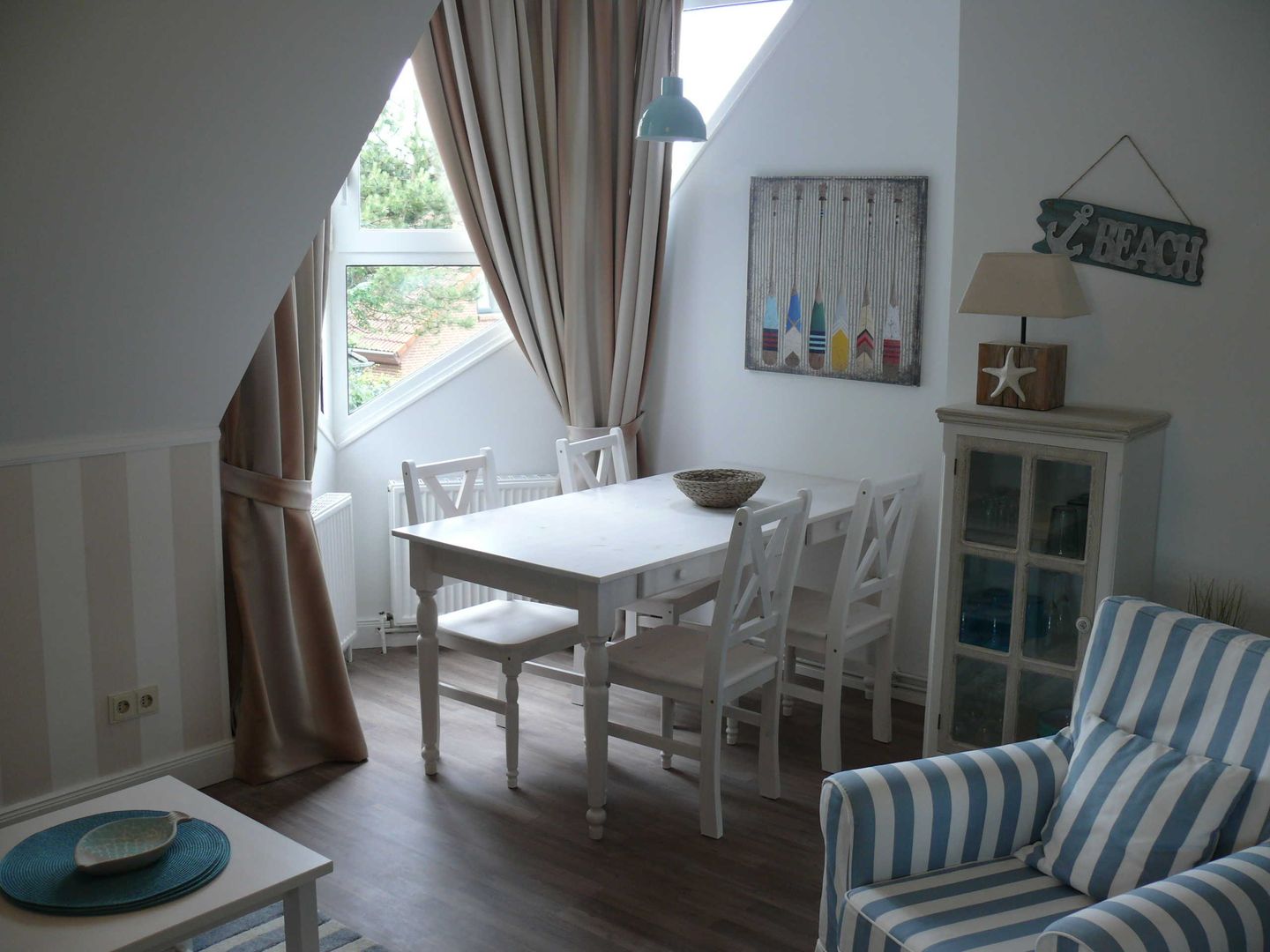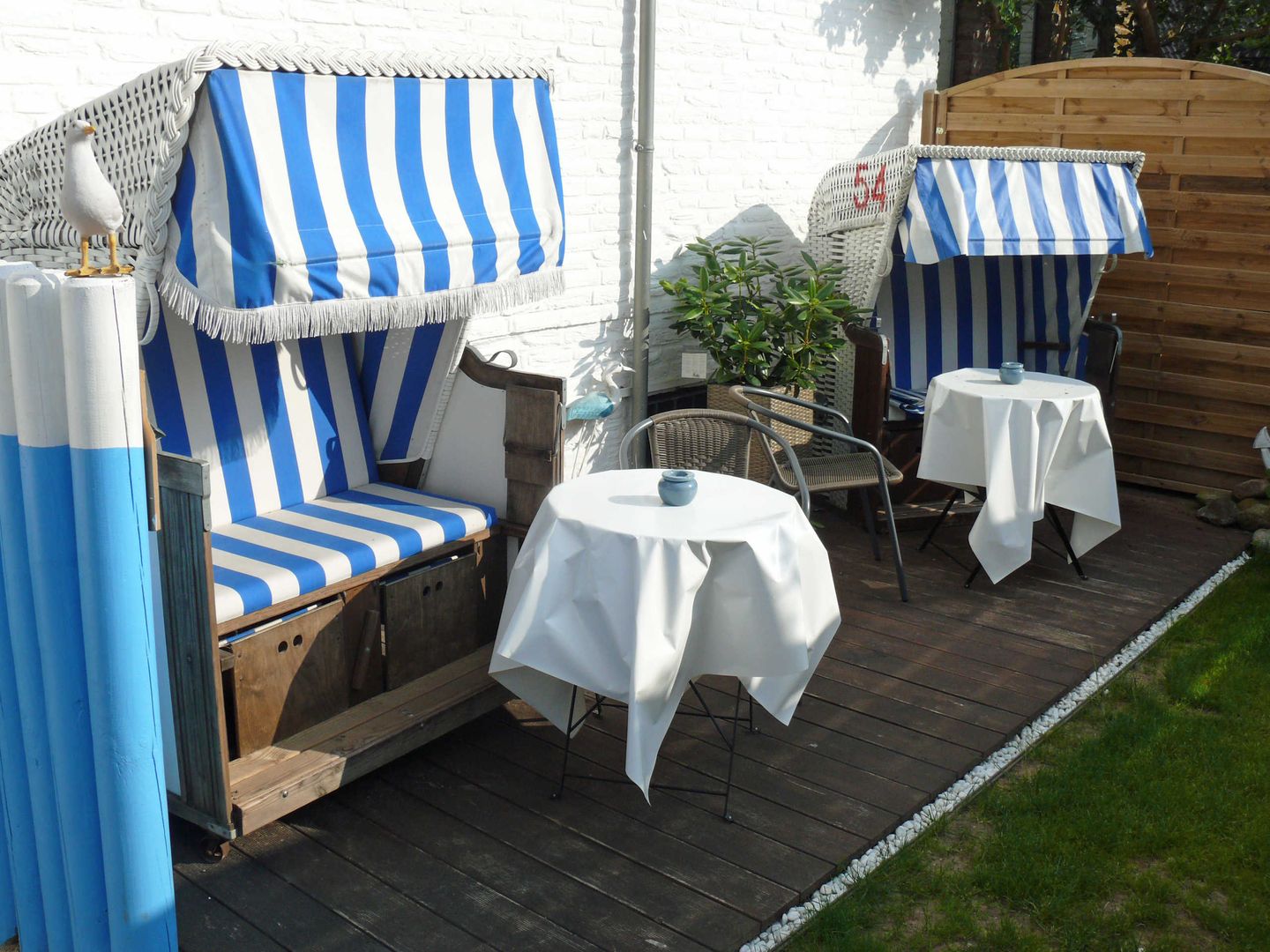 Wikingerring 7, ca. 39 m², 1. Etage, Terrasse mit Strandkorb für Wohnung 1 und 3 gemeinsam nutzbar, Wohnzimmer mit Schlafsofa und Essbereich, TV, DVD-Player, WLAN, offene Küchenzeile mit Ceranfeld und Mikrowelle, Kühlschrank, Schlafzimmer mit Doppelbett, Dusch-Bad mit WC und Haartrockner, keine Haustiere, PKW-Abstellmöglichkeit im öffentlichen Bereich an der Straße, Bettwäsche und Handtücher bitte mitbringen oder spätestens zwei Tage vor Anreise gegen Gebühr bestellen.
