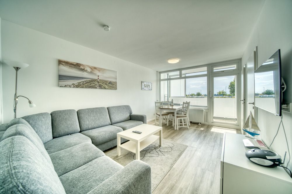 Die Ferienwohnung im Haus D befindet sich im Erdgeschoss mit Süd-West-Balkon und 45 m² Wohnfläche. Die 2022 sanierte Wohnung bietet Platz für bis zu 4 Personen und überzeugt mit hochwertiger Ausstattung.