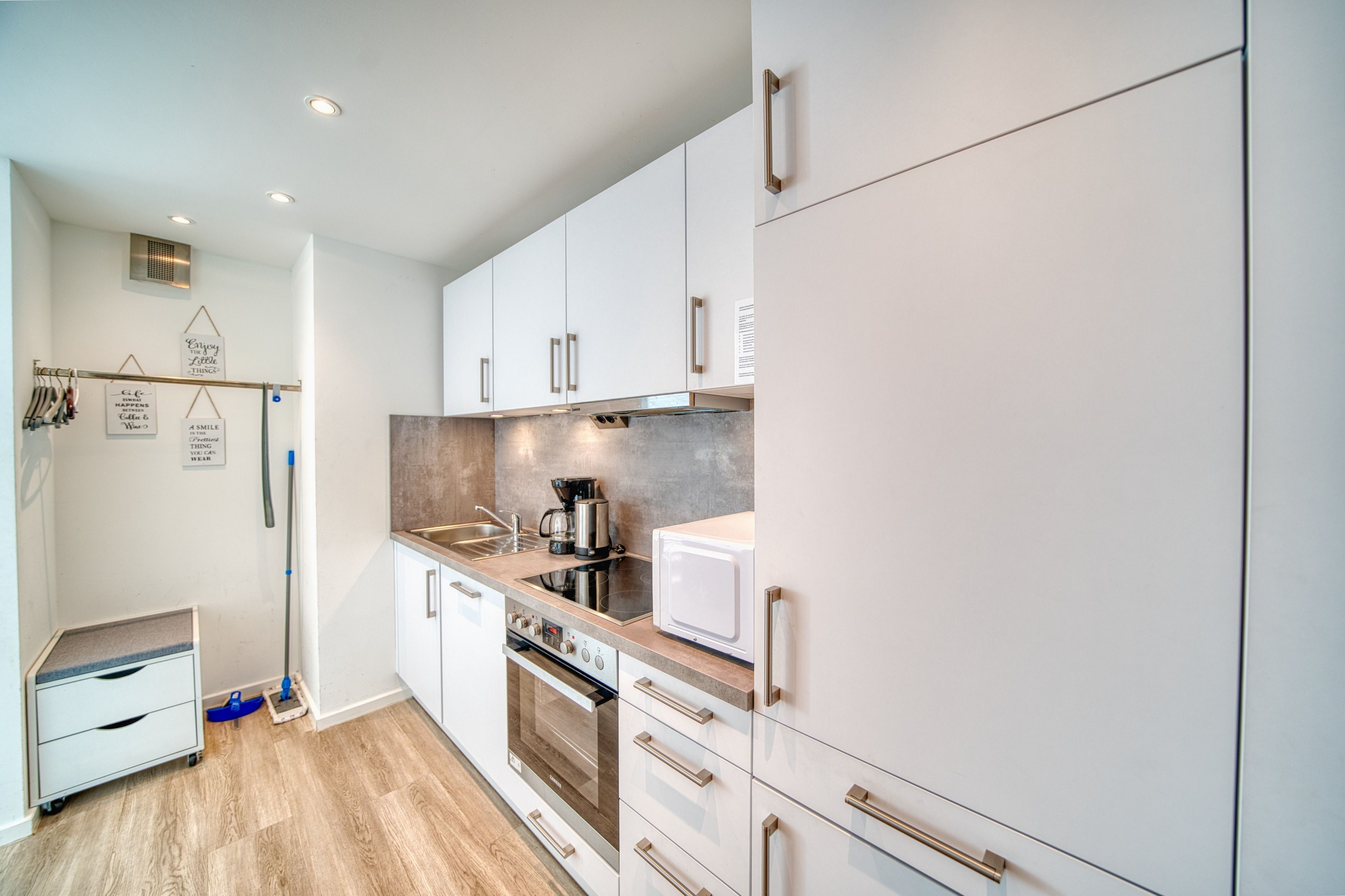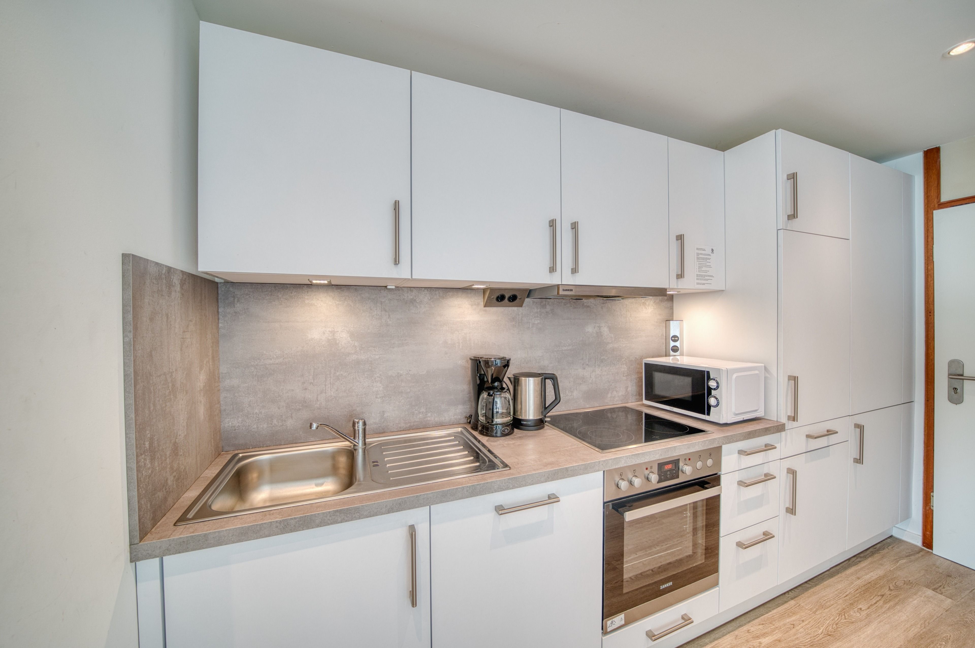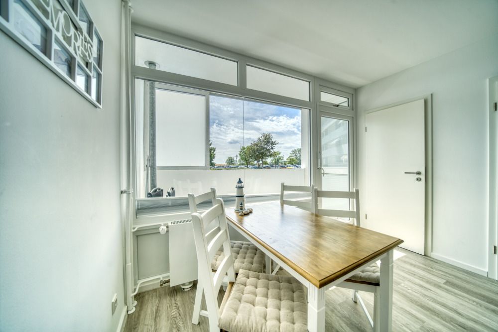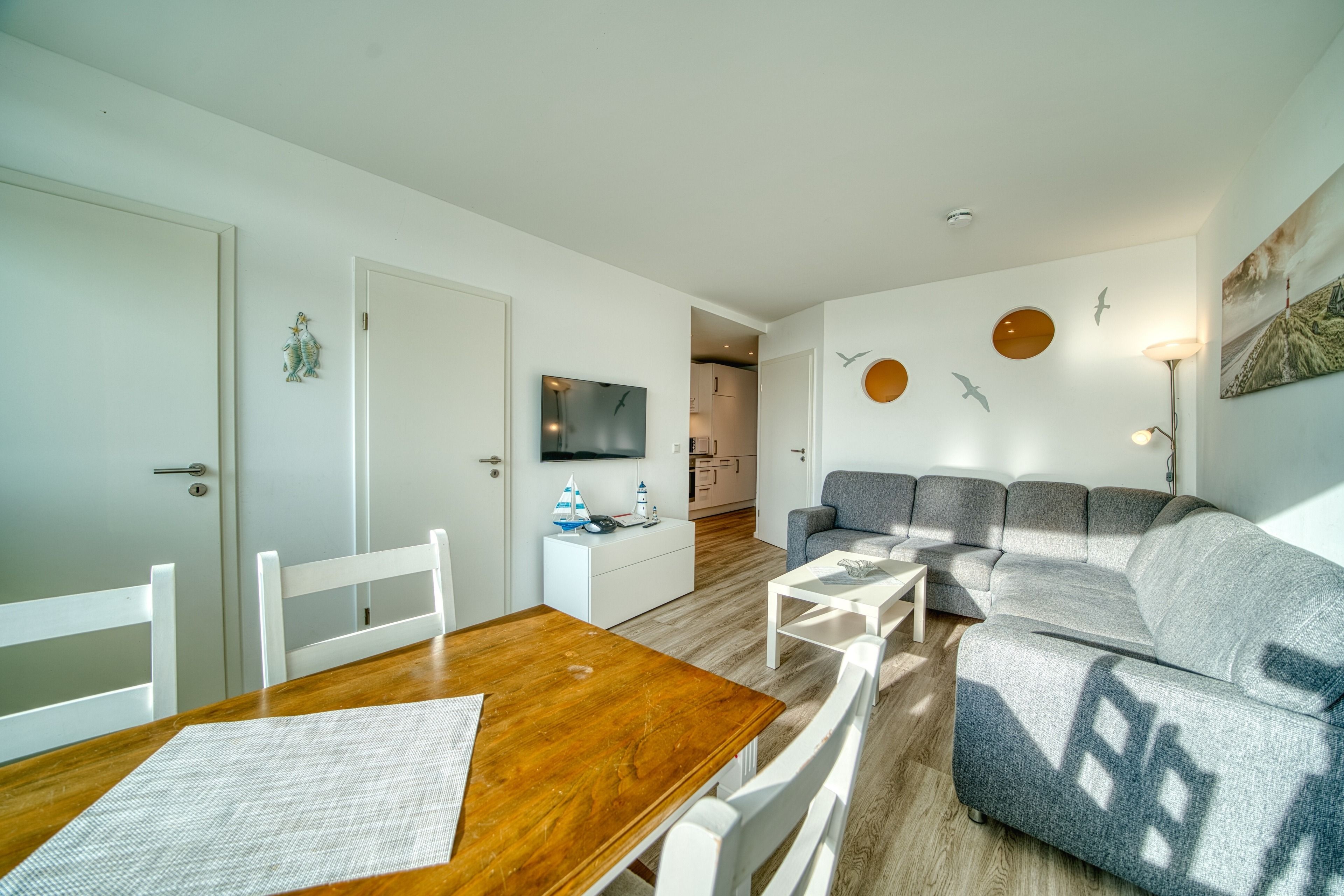 Die Ferienwohnung im Haus D befindet sich im Erdgeschoss mit Süd-West-Balkon und 45 m² Wohnfläche. Die 2022 sanierte Wohnung bietet Platz für bis zu 4 Personen und überzeugt mit hochwertiger Ausstattung.