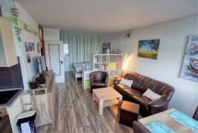 Wohn-/Essbereich mit Sofa, Flachbild-TV und Essplatz für 4 Personen, separater Elternschlafbereich mit Doppelbett und TV sowie Kinderzimmer mit Hochbett für 2 Personen und TV. Die Küche ist komplett ausgestattet mit Ceranfeld, Backofen, Geschirrspüler, Kühlschrank mit Gefrierfach, Kaffeemaschine und Wasserkocher. Bad mit großzügiger Dusche. Kostenloses WLAN, Nichtraucherwohnung, keine Haustiere. Parkplatz vorhanden, ca. 300 m zum Strand, Aktiv-Hus mit Schwimmbad, Sauna und Wellness fußläufig erreichbar.