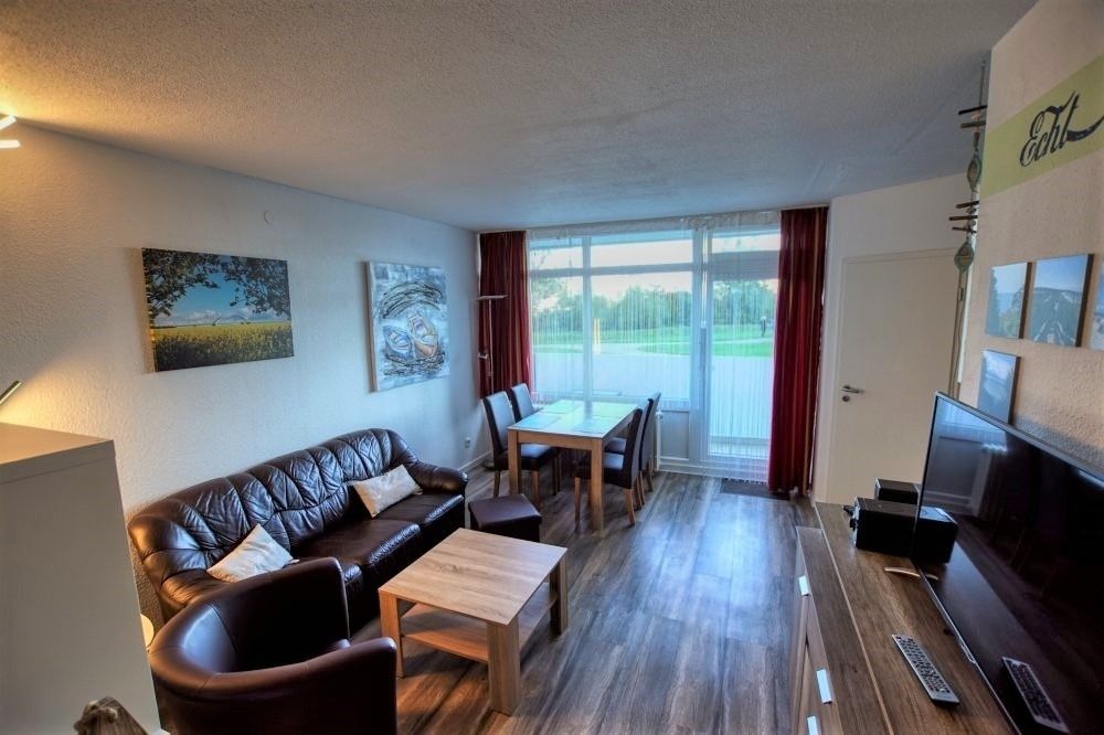 Die Ferienwohnung im Haus D im Erdgeschoss mit Süd-West-Balkon und 45 m² Wohnfläche wurde 2022 hochwertig saniert und bietet Platz für bis zu 4 Personen.