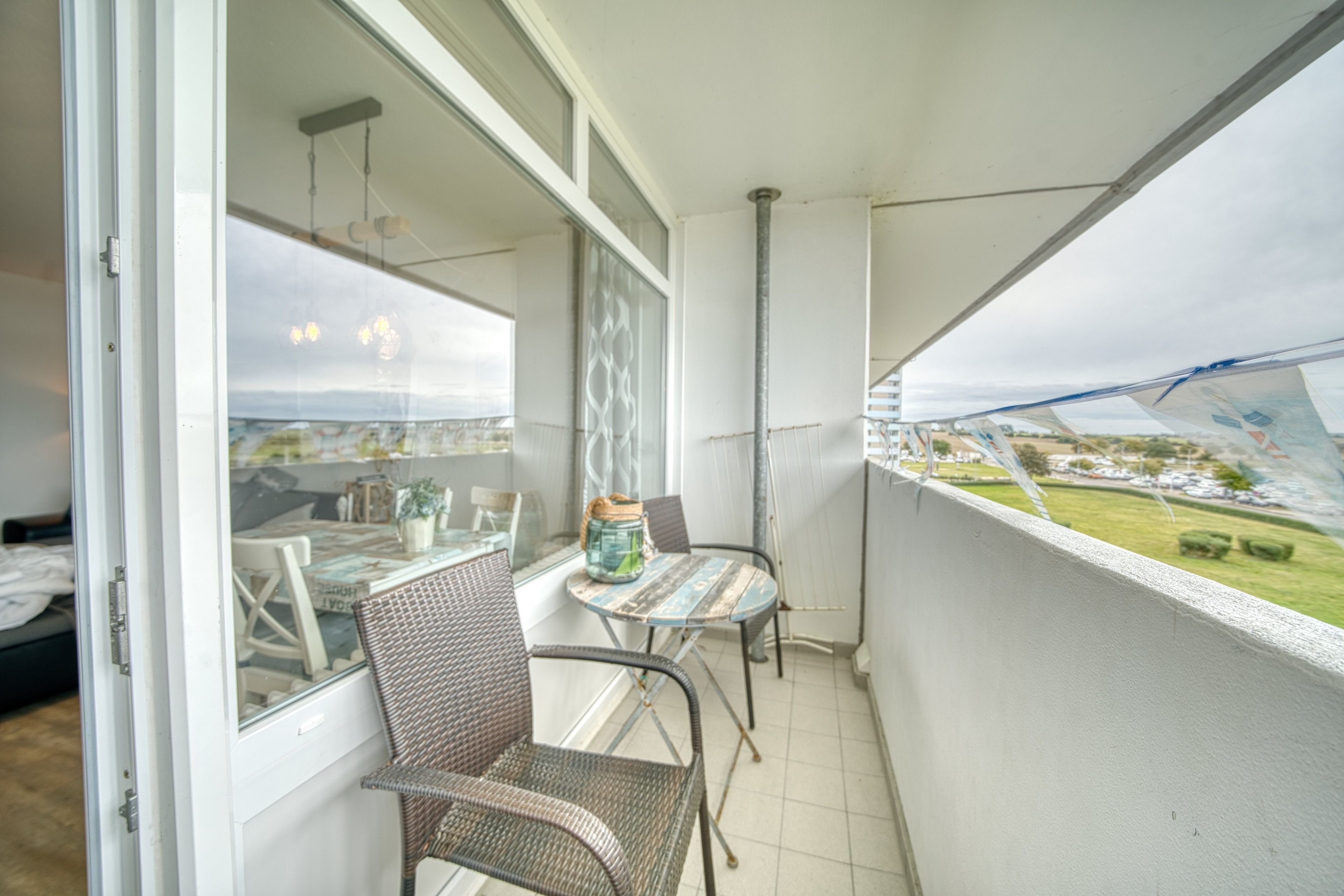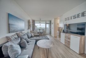 Die Ferienwohnung im Haus E, 3. Etage, mit Westbalkon bietet herrlichen Ostseeblick und Sonne vom Nachmittag bis in die Abendstunden – perfekt, um den Sonnenuntergang zu genießen.