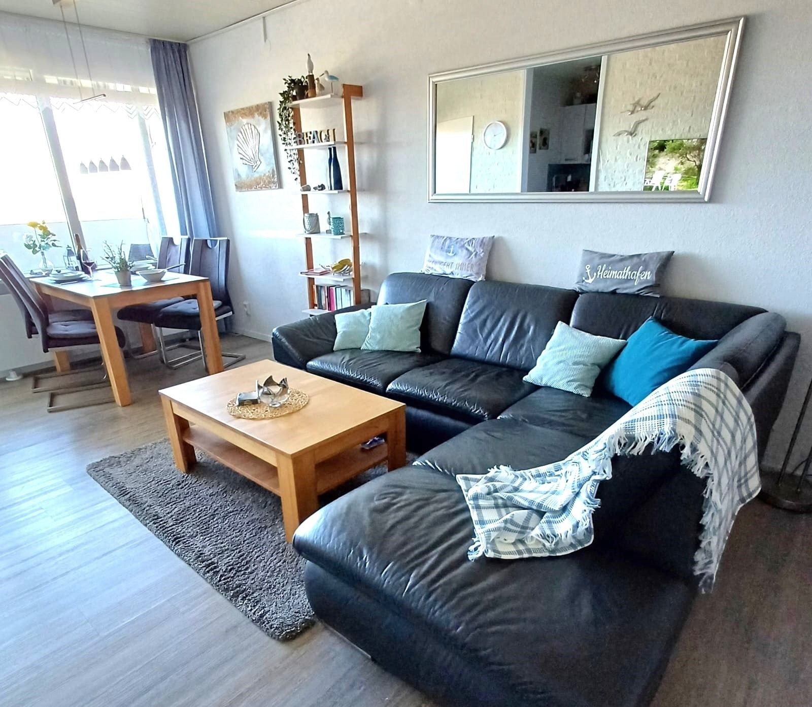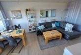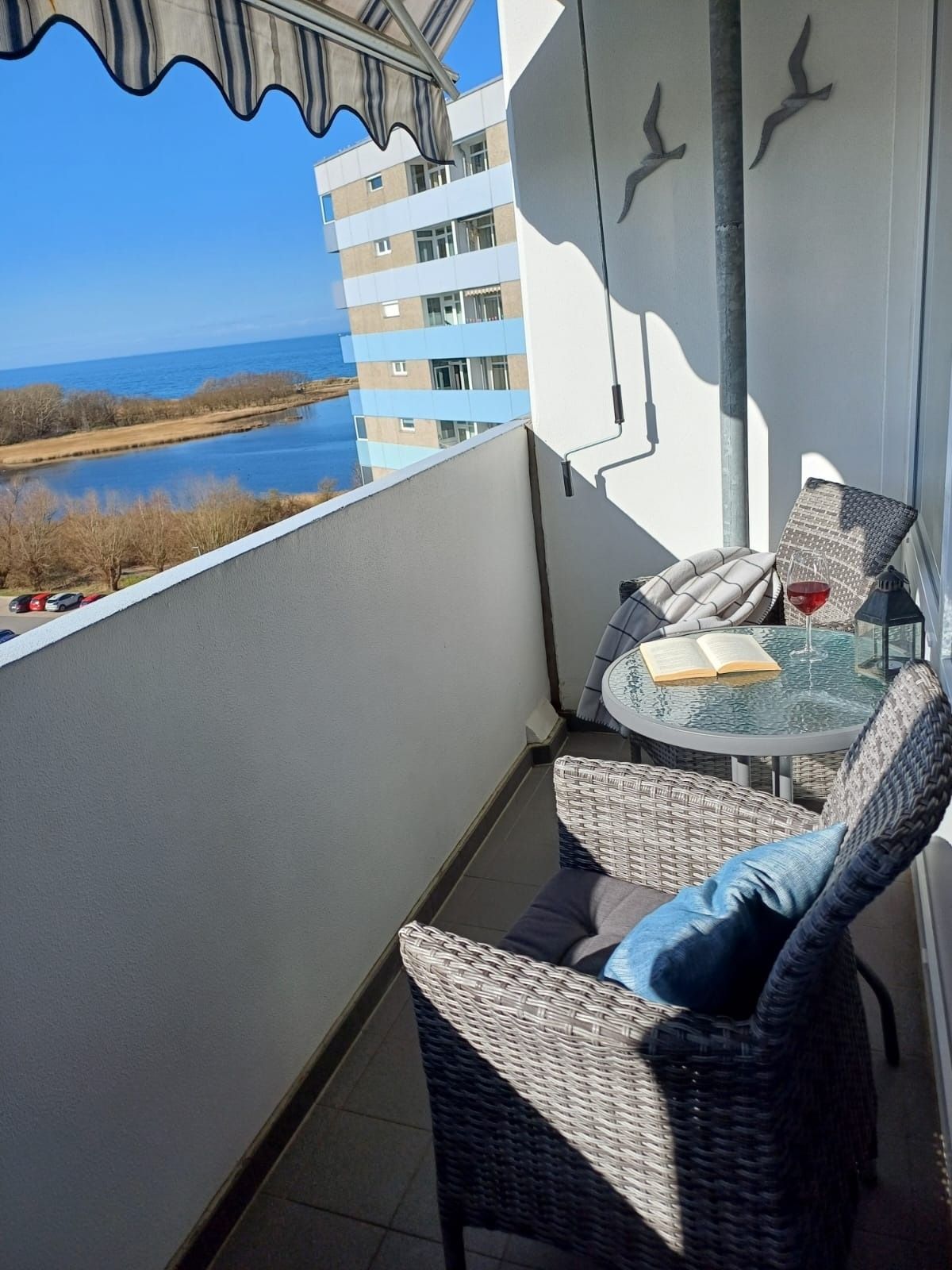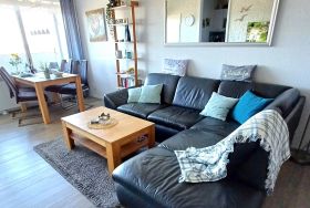 Diese moderne Ferienwohnung für bis zu 4 Personen im Haus F (8. Etage, Fahrstuhl) bietet traumhaften Blick auf Ostsee, Salzwiesen und Leuchtturm. Westbalkon mit Sonnenmarkise, Wohn-Esszimmer mit Ledersofa, Smart-TV, Internetradio, Essplatz für 4 Personen. Elternschlafbereich mit Doppelbett, Kinderzimmer mit Etagenbett. Voll ausgestattete Küche mit Kühlschrank, Gefrierfach, Ceranfeld, Mikrowelle, Kaffeemaschine, Nespresso, Wasserkocher, Toaster, Geschirrspüler. Modernes Bad mit Dusche/WC, Balkonmöbel, kostenloses WLAN, Parkplätze. Aktiv Hus mit Schwimmbad, Sauna, Wellness, Indoor-Spielwelt, Cafés, Restaurants. Ostseestrand ca. 300 m entfernt.