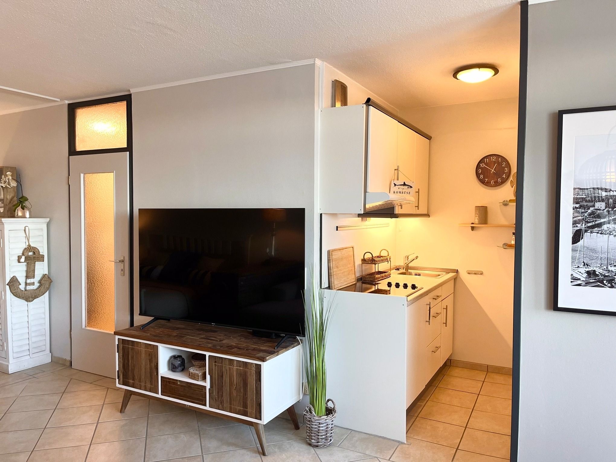 Die Wohnung 0F1202 liegt im Haus F Ferienpark, in der 12. Etage, und verfügt über den größten Balkon im gesamten Ferienpark – ideal für Frühstücke in der Morgensonne oder entspannte Abende mit Blick auf die Landschaft und spektakuläre Sonnenaufgänge. Wohnbereich mit Couch, 65-Zoll Smart-TV und Rivièra Maison Möbeln. Schlafbereich mit Doppelbett, zusätzliches Einzelbett. Offene Küchenzeile mit Ceranfeld, Mikrowellen-Backofen-Kombigerät. Bad mit Duschkabine und Handtuchtrockner. Großzügiger Balkon mit herrlicher Aussicht. Kostenloses WLAN. Nichtraucher, keine Haustiere, Fahrstuhl, Fahrradräume, ca. 300 m zum Strand, kostenfreier Parkplatz. Ideal für bis zu 3 Personen, mit Schwimmbad, Sauna, Wellness und Kinderspielwelt im Ferienpark.