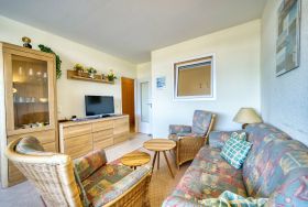 45 qm Wohnfläche mit Wohn-Esszimmer (Flachbild-TV, Radio), Elternschlafzimmer (Doppelbett, TV), Kinderzimmer mit Etagenbett, Küche (4-Plattenherd, Mikrowelle, Kühlschrank, Geschirrspüler) und Bad (WC, Duschkabine). Balkon mit Ostseeblick, WLAN, Saisonstrandkorb inklusive (Mai–September). Nichtraucher, max. 4 Personen, Fahrstuhl, Fahrradräume, Strand ca. 300 m, kostenfreier Parkplatz. Ferienpark bietet Läden, Schwimmbad, Sauna, Wellness und Kinderspielwelt. Strand über Promenade schnell erreichbar.