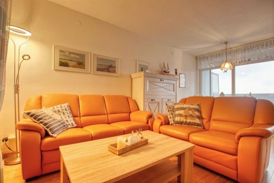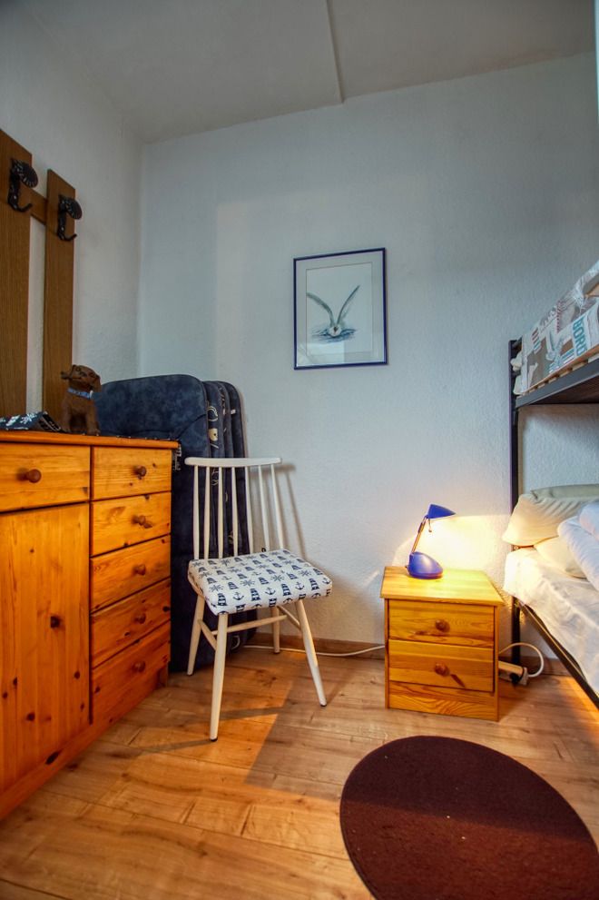 51 qm Wohnfläche: Wohn-Esszimmer mit Sitzecke, TV und Radio; Elternschlafbereich mit Einzelbetten, Kinderzimmer mit Hochbett. Küche mit 4-Plattenherd und Kühlschrank (ohne Gefrierfach), Bad mit Dusche. Großer Balkon mit Sitzgelegenheit. Nichtraucher, keine Haustiere, Fahrstuhl, Fahrradräume, kostenfreier Parkplatz. Strand ca. 300 m über Promenade, Ferienpark mit Läden, Aktiv-Hus, Schwimmbad, Sauna, Wellnesslandschaft und Kinderspielwelt – ideal für entspannte und abwechslungsreiche Urlaubstage.