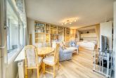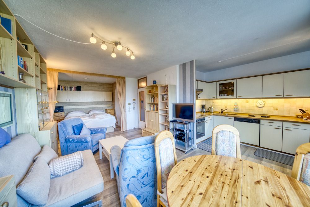 Die Wohnung verfügt über Wohn-/Essbereich mit Flachbild-TV, Schlafbereich mit Doppelbett, Küche mit Cerankochfeld, Backofen, Mikrowelle, Kühlschrank mit Gefrierfach und Spülmaschine, Bad mit WC, Duschkabine und Handtuchhalter. Kostenfreies WLAN, Fahrstuhl, kostenloser Parkplatz, abschließbare Fahrradräume, ca. 300 m zum Strand. Nichtraucherwohnung, keine Haustiere. Aktiv-Hus, Restaurants und Einkaufsmöglichkeiten nur 30 m entfernt.