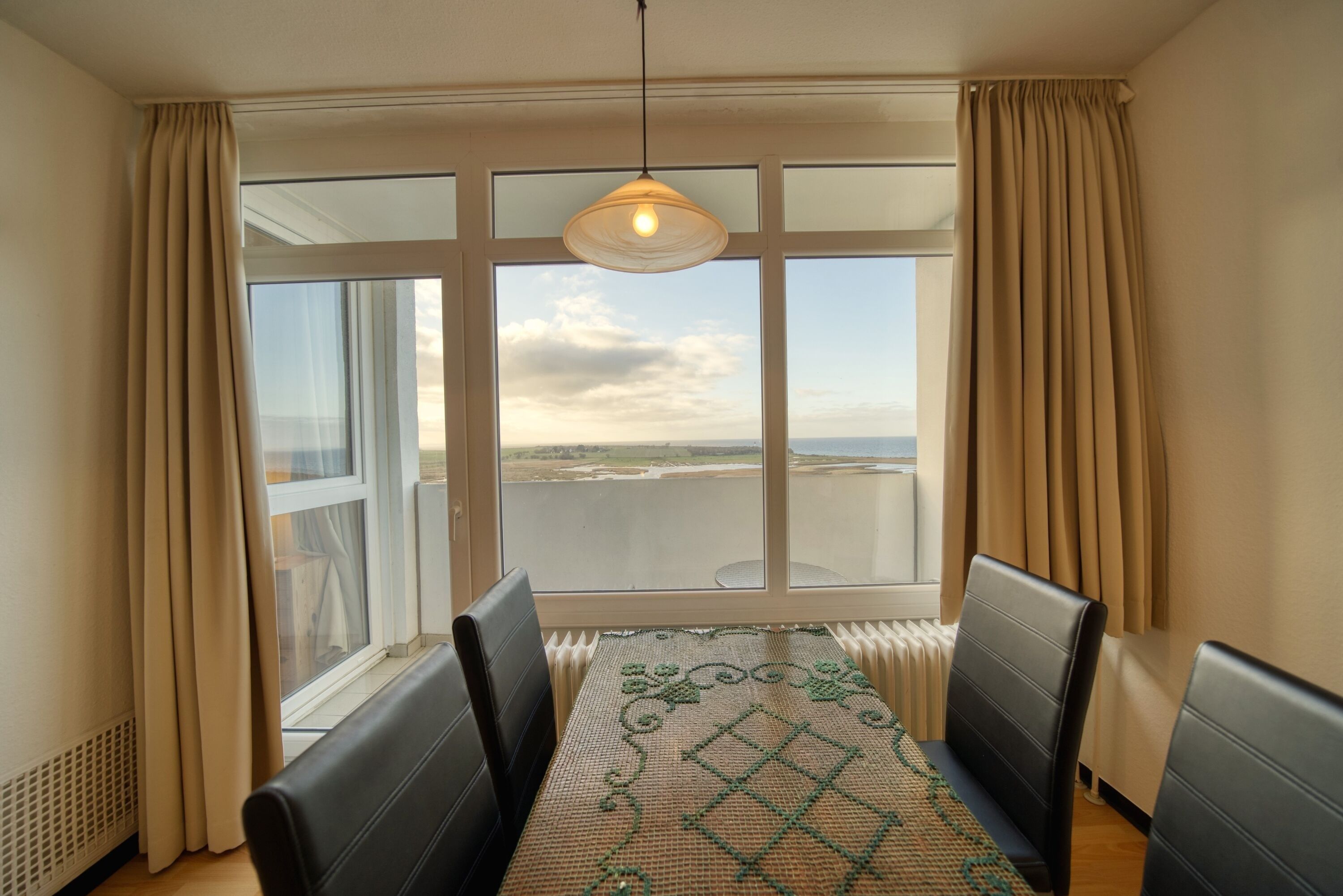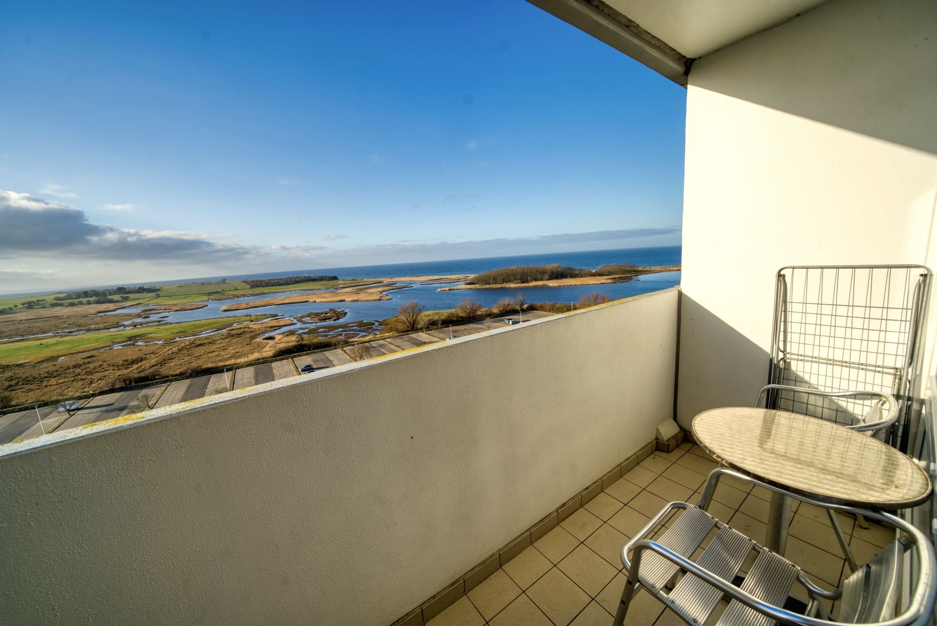 Diese gemütliche Wohnung liegt im Haus H Ferienpark, in der 11. Etage, mit Balkon zur Westseite, der einen herrlichen Ostseeblick über die Salzwiesen bis zum Leuchtturm bietet. Hier genießen Sie Sonne vom Nachmittag bis in die Abendstunden und das farbenfrohe Lichterspiel des Sonnenuntergangs an der Ostsee. Wohn-/Essbereich, Schlafbereich mit zwei Einzelbetten, separates Kinderzimmer mit Etagenbett. Küche mit 4-Plattenherd, Mikrowelle, Kühlschrank mit Gefrierfach. Bad mit WC und Duschkabine. Laminatboden, gemütliche Einrichtung. Bonus: kostenfreies WLAN. Nichtraucherwohnung, keine Haustiere, Fahrstuhl, Fahrradräume, ca. 300 m zum Strand, Parkplatz inklusive. Aktiv-Hus, Shops und Restaurants in unmittelbarer Nähe.