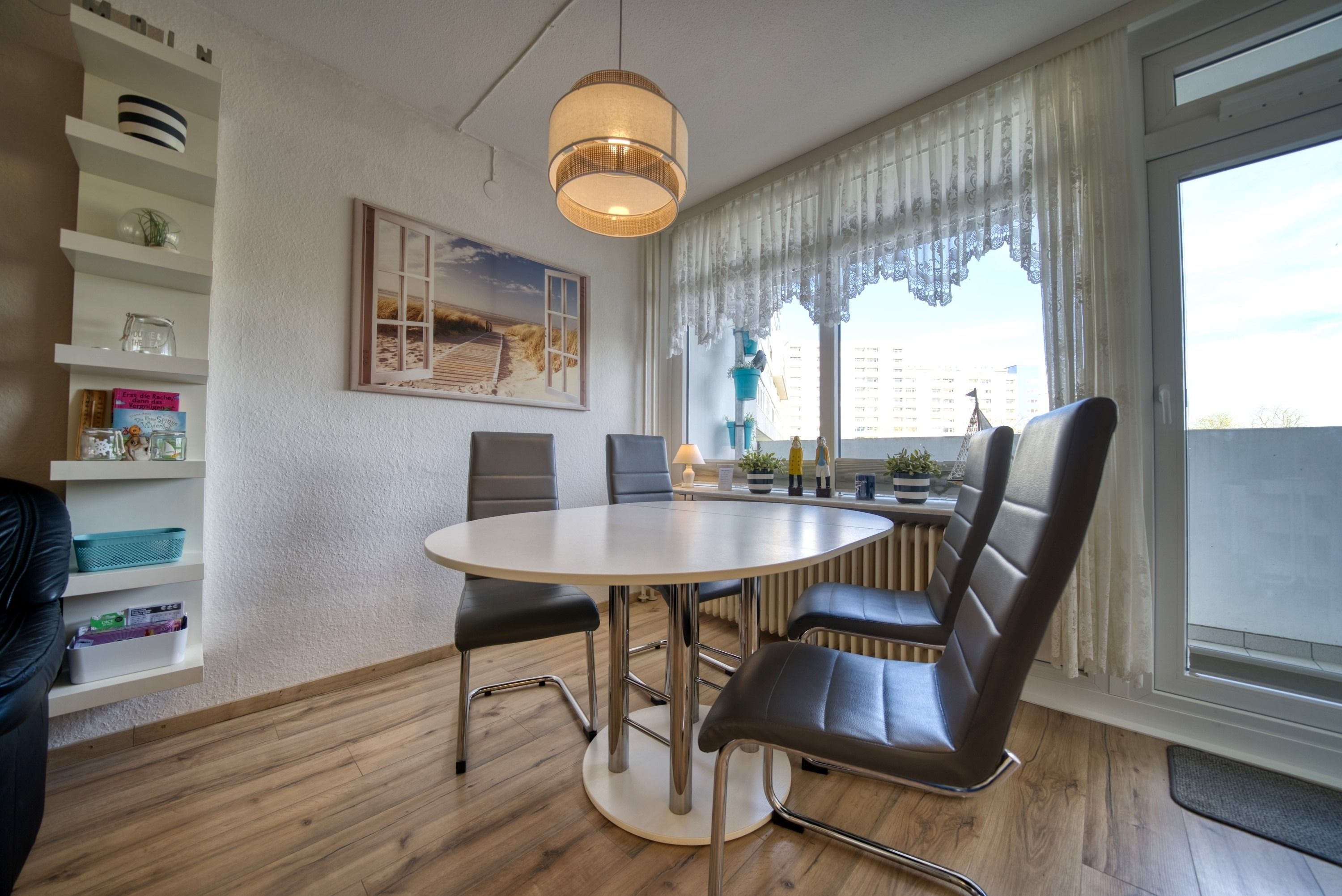 Die Wohnung liegt im Haus K Ferienpark, in der 1. Etage, mit Balkon zum Innenhof, der einen schönen Blick auf die Grünanlagen bietet.