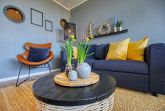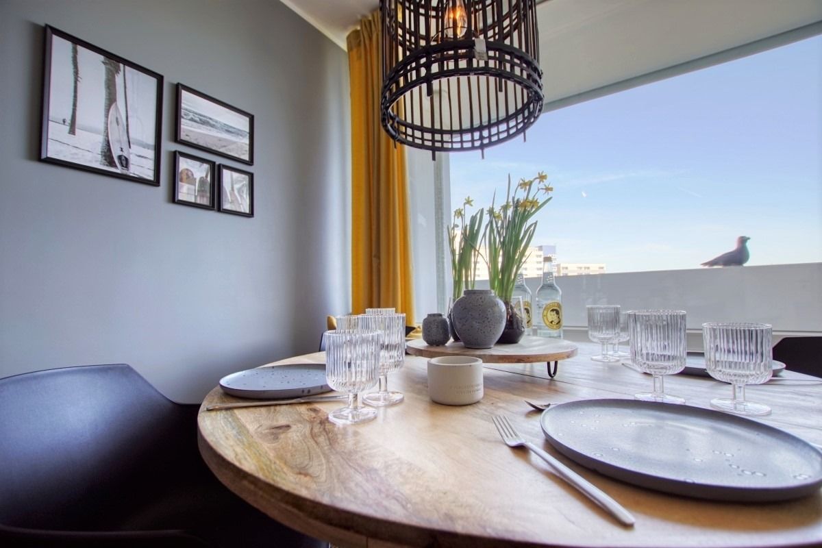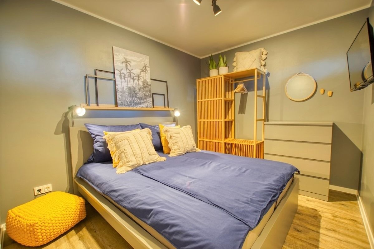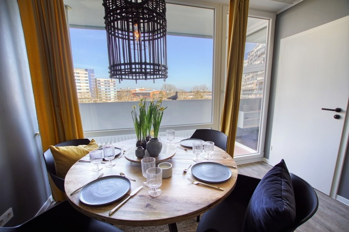 Hochwertige Ferienwohnung im Haus K, 3. Etage, 45 m², für bis zu 5 Personen, mit Balkon und Blick auf den Innenhof Richtung Ostsee. Schlafzimmer mit Doppelbett/TV, Kinderzimmer mit ausziehbarem Bett und TV, Wohn-Essbereich mit Schlafsofa, Smart-TV, Sessel und Esstisch am Balkonfenster. Küche mit Induktionsherd, Backofen, Kühlschrank, Geschirrspüler, Nespresso-Maschine, Mikrowelle, Toaster, Wasserkocher. Bad mit ebenerdiger Dusche, WC, Handtuchtrockner. Weitere Annehmlichkeiten: WLAN, Fahrstuhl, abschließbare Fahrradräume, Parkplatz. Strand ca. 300 m, Aktiv-Hus, Restaurants und Geschäfte direkt erreichbar. Perfekt für Familienurlaub an der Ostsee.