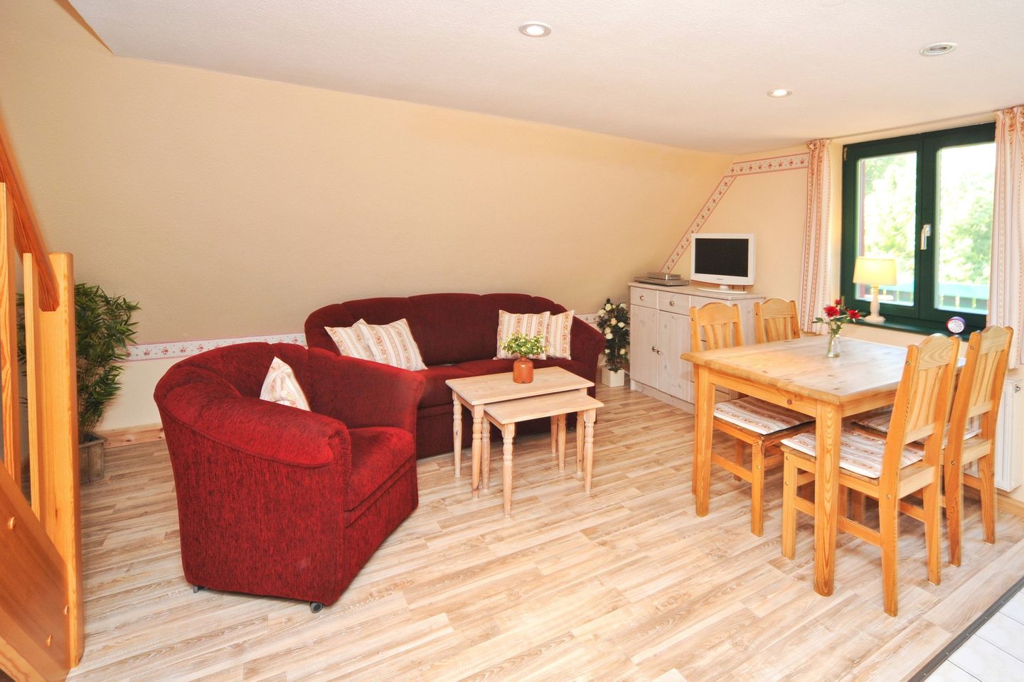 Eine Treppe führt vom Wohnzimmer in den Spitzboden, dem 2. Schlafzimmer mit zwei Einzelbetten.