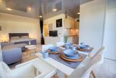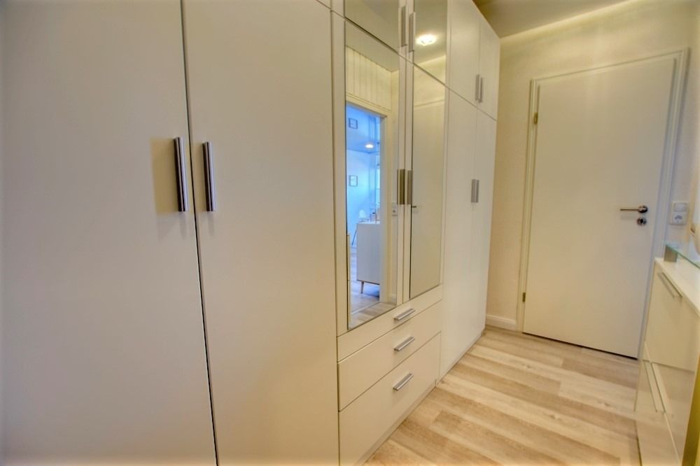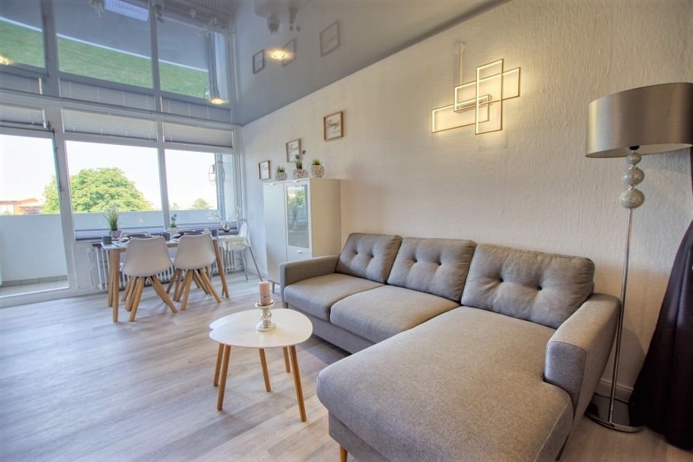 Die 45 m² Wohnung verfügt über Wohn-Esszimmer, Elternschlafbereich mit Doppelbett, Kinderzimmer mit Hochbett, hochwertige Vinylböden, Designer-Spanndecke mit LED-Spots, komplett ausgestattete Küche mit Ceranfeld, Kühlschrank/Gefrierfach, Kaffeemaschine, Wasserkocher und Toaster sowie neues Bad mit Dusche/WC. Bonus: WLAN, Eintritt im Indoorspielplatz im Aktiv-Hus, Babyreisebett und Kinderhochstuhl. Nichtraucher, keine Haustiere, Fahrstuhl, kostenfreier Parkplatz. Strand ca. 300 m entfernt, kurze Promenade zum Wasser.