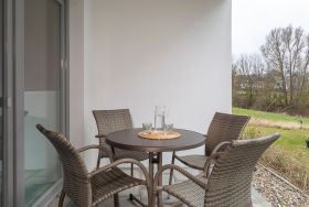 Sehr ansprechende 2-Zimmer-Ferienwohnung, ca. 49 m², für bis zu 3 Personen, mit kleiner Terrasse, Duschbad, WLAN, Tiefgaragenstellplatz