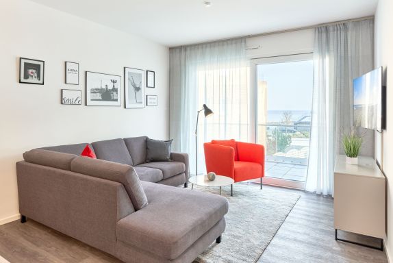 Sehr ansprechende, feine Wohnung. Aus dem Wohnzimmer sowie vom Balkon haben Sie einen Teilmeerblick.
