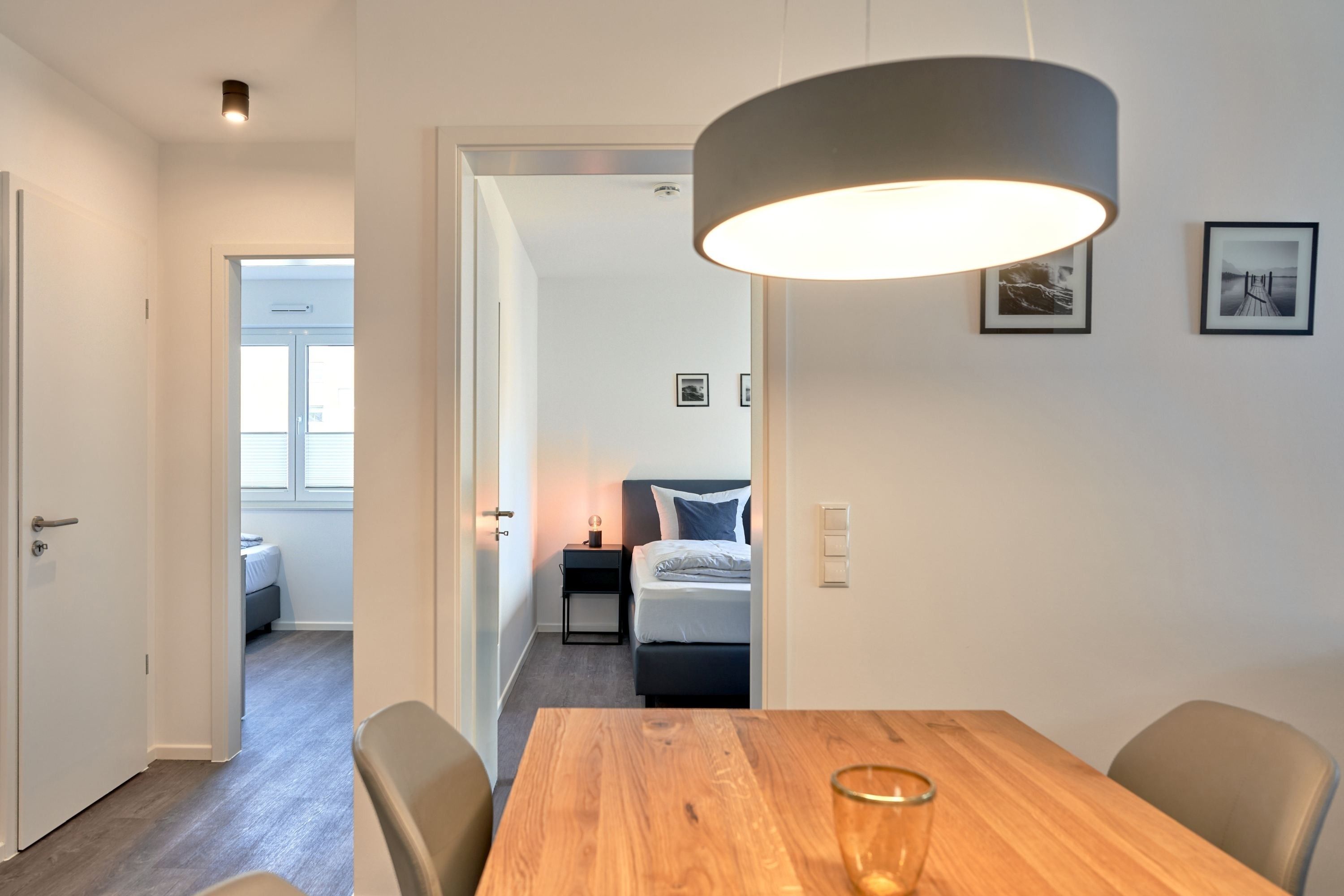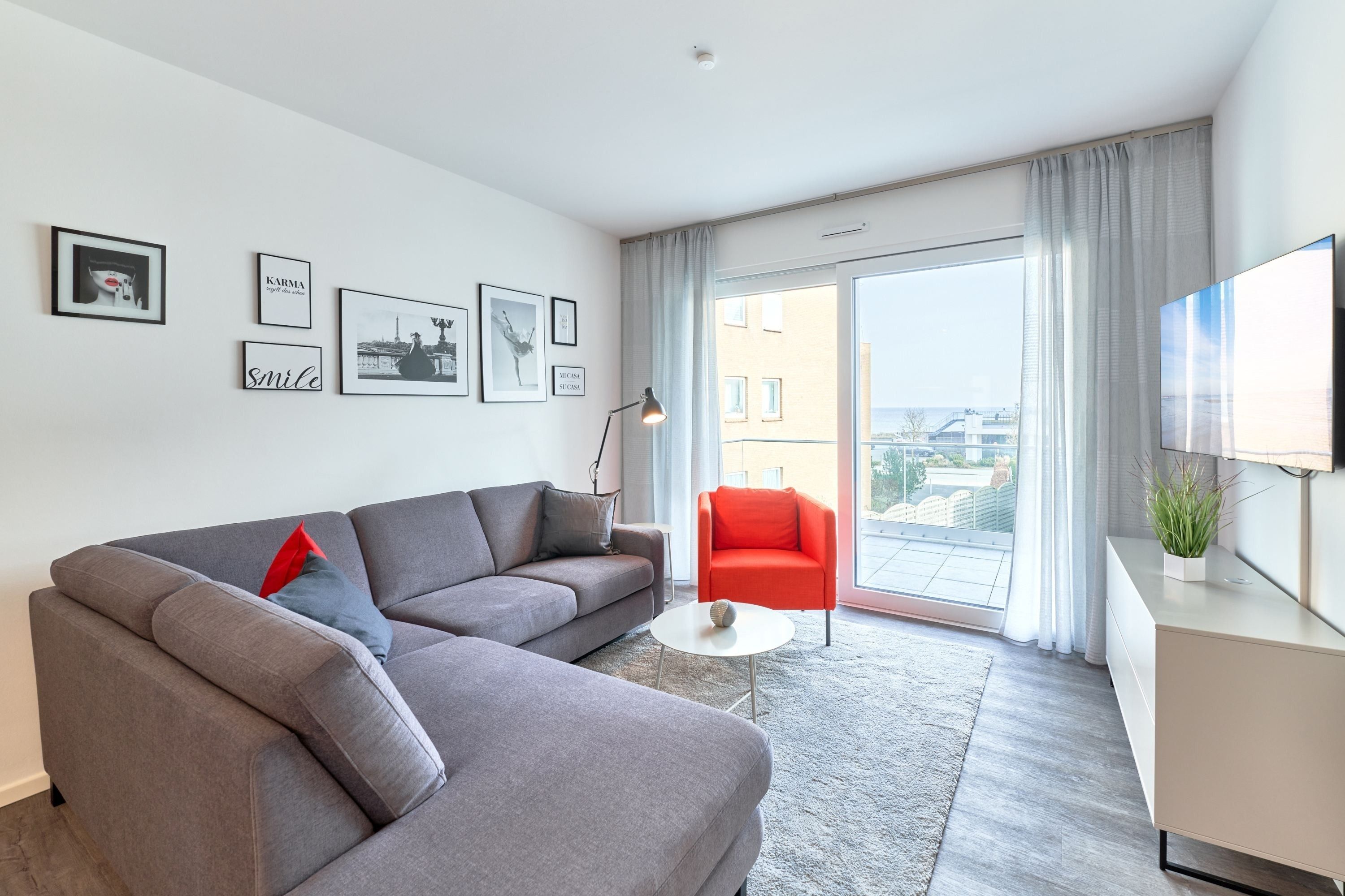 3-Zimmer, im 1. OG, mit Balkon. Diese feine Wohnung zeichnet sich durch eine moderne sowie gemütliche Inneneinrichtung aus. Die Küche ist mit hochwertigen Einbaugeräten und allen notwendigen Küchenutensilien ausgestattet. Neben einer Kaffeemaschine steht Ihnen auch eine Senseo-Maschine zur Verfügung sowie Spülmaschine, Induktionsherd, Backofen, Mikrowelle und vieles mehr. Im Wohnzimmer erwarten Sie ein gemütliches Ecksofa, eine PlayStation 4, ein Smart-TV in 46 und Apple AIR Play. Unbegrenztes Highspeed-WLAN steht für Entertainment und digitales Erleben zur Verfügung. Der Essbereich bietet Ihnen Platz für 4 Personen.