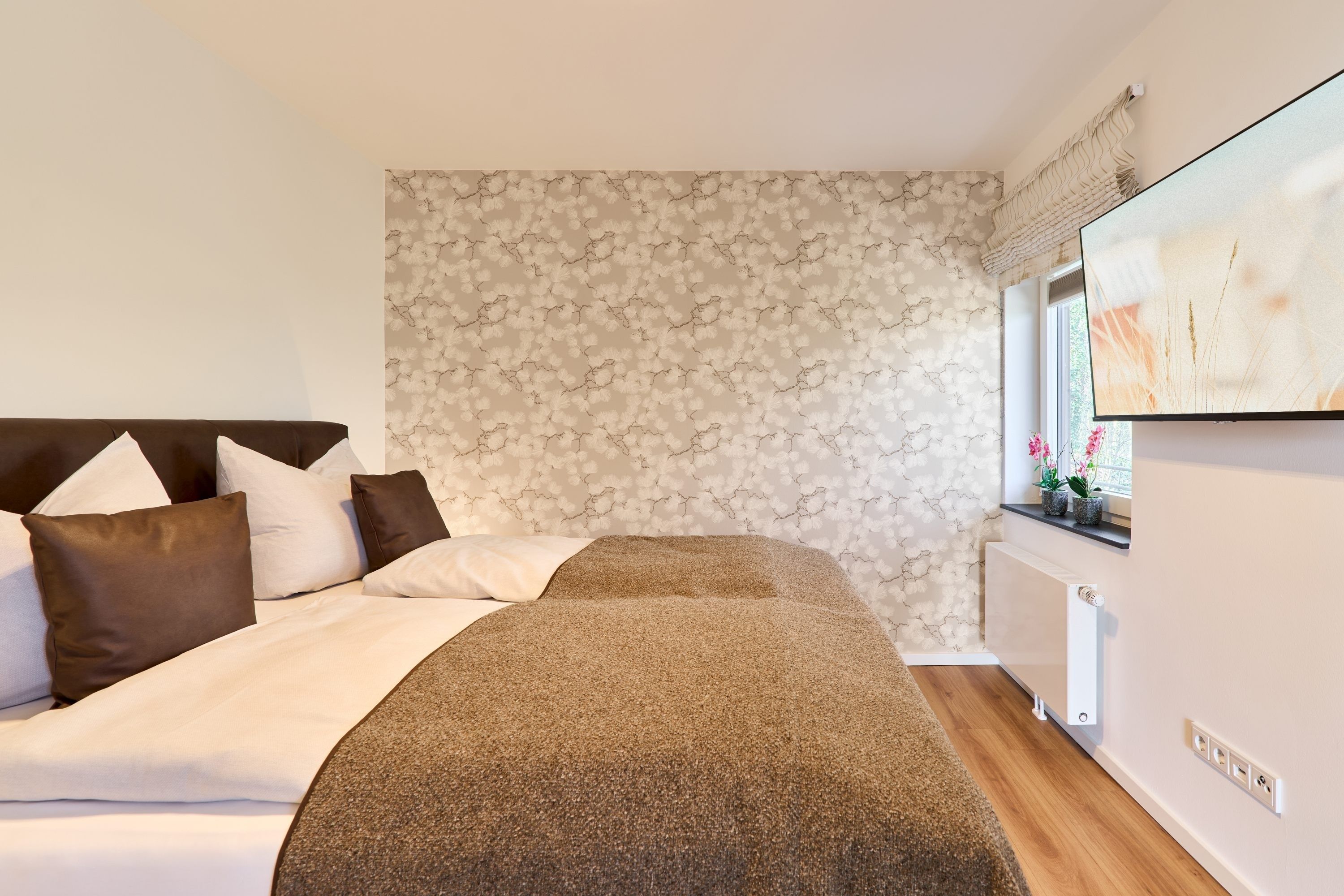 Diese schöne Wohlfühlwohnung hat einen großen Balkon mit Blick auf die Ostsee und ins Grüne. In der Wohnung erwarten Sie ein Geschmack vom Feinsten sowie Großzügigkeit. Lassen Sie sich überraschen. Eine großartige Wohnküche, ein großer Essbereich erwarten Sie in dieser Wohnung. Der Wohnbereich ist separiert und mit einer hochwertigen Einrichtung ausgestattet. Auch die technische Ausstattung lässt keine Wünsche offen: Ein Flachbildschirm-TV befindet sich im Wohnbereich sowie im großen Schlafzimmer. Das große Schlafzimmer ist mit einem Boxspringbett (1,80mx2,00m) ausgestattet. Die weiteren zwei Schlafzimmer besitzen Einzel-Boxspringbetten (1,00mx2,00m). Die Wohnung hat ein Tageslichtduschbad sowie ein sehr geräumiges Gäste-WC mit einer Waschmaschine. Ein Abstellraum befindet sich ebenfalls in der Wohnung. Kostenloses WLAN steht Ihnen zur Verfügung.