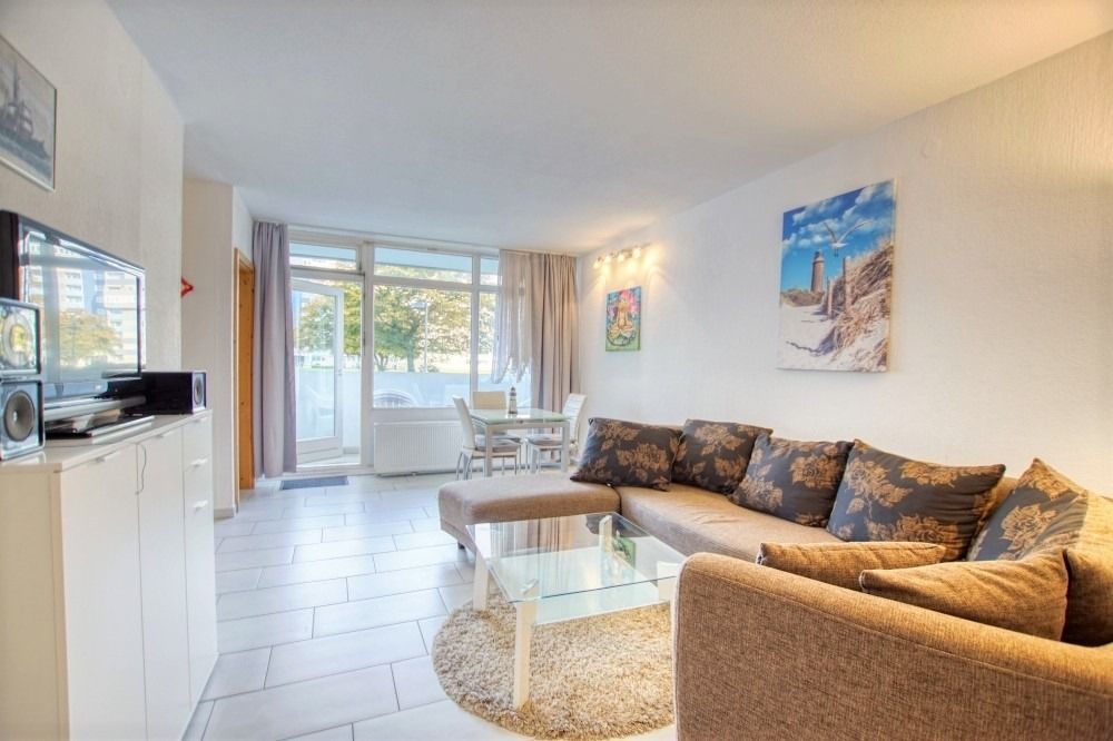 Diese gepflegte Ferienwohnung im Erdgeschoss des Hauses Q bietet auf 45 m² Platz für bis zu 3 Personen. Balkon mit Blick auf den grünen Innenhof. Wohn-Schlafbereich mit Doppelbett, separates Einzelzimmer, helle Fliesenböden, Flachbild-TV und WLAN. Küche mit Ceranfeld, Backofen, Kühlschrank mit Gefrierfach, Kaffeemaschine, Wasserkocher, Toaster. Badezimmer mit Duschbereich und Handtuchtrockner. Nichtraucherwohnung, keine Haustiere. Ca. 300 m zum Strand, Aktiv-Hus, Einkaufsmöglichkeiten und Restaurants in unmittelbarer Nähe. Fahrstuhl, kostenloser Parkplatz und abschließbare Fahrradräume vorhanden – ideal für erholsame Urlaubstage an der Ostsee.