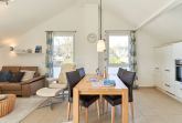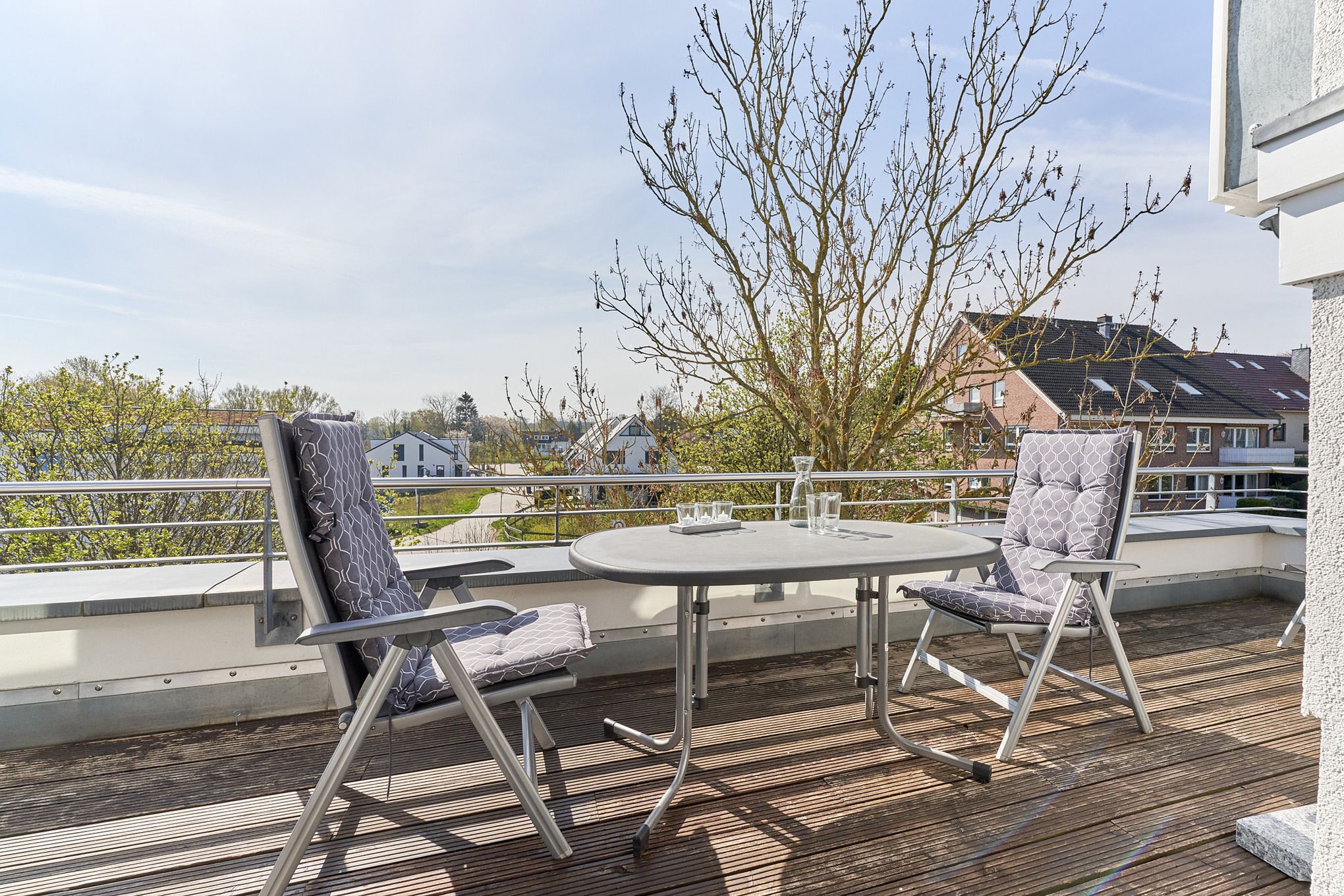 Genießen Sie Ihren Urlaub in dieser lichtdurchfluteten Ferienwohnung, die Ihnen mit ihren zwei Schlafzimmern und dem großen Wohnzimmer mit integrierter Küche, großem Esstisch, Relaxsessel und gemütlicher Fernsehecke, inklusive Musikanlage und Blu-ray-Player, viel Raum zum Entspannen bietet. WLAN steht Ihnen kostenlos zur Verfügung. Die nach Süden ausgerichtete, großzügige Sonnenterrasse ist vom Wohnzimmer und von beiden Schlafzimmern aus zu betreten. Hier stehen Tisch, Stühle, Liegen und ein Strandkorb für Sie bereit. Die Schlafzimmer sind mit Verdunklungsvorhängen und Flachbildfernsehern ausgestattet (Bettenbreite Einzelbetten 1,00 x 2,00m, Doppelbett 1,80x2,00m). Das helle Badezimmer mit Tageslicht verfügt über eine bodentiefe Dusche, Fußbodenheizung, Handtuchheizkörper, Waschmaschine und Wandwickeltisch.