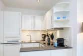 Flurbereich mit einem Einbauschrank. Großes Badezimmer mit begehbarer Dusche (1,80 x 0,90m), Kopf-/Regendusche sowie einer Sauna (bis 80 Grad), für bis zu drei Personen (canadisches Hemlocktannenholz, große Glasfront). Die sehr ansprechende Einbauküche lässt keine Wünsche offen: Spülmaschine, Nespresso-Maschine, Kaffeefiltermaschine, Toaster, Airfryer, Mixer, Pürierstab und vieles mehr sind vorhanden. Der gemütliche Essbereich ist für bis zu vier Personen geeignet. Hier finden Sie auch Platz für gesellige Spieleabende (Spielesammlung und Puzzle sind vorhanden). Der feine Wohnbereich ist mit einem bequemen Sofa ausgestattet, das in wenigen Handgriffen zu einem Schlafsofa/ Bettsofa (Liegefläche 1,60 x 2,00m, Federholzrahmen incl. Lattenrost und Matratze) umfunktioniert werden kann. Flach-TV 42, Radio mit Bluetooth-Lautsprecher und WLAN sind vorhanden. Vom Wohnzimmer aus gelangen Sie auf den Südbalkon. Hier warten ein Strandkorb sowie ein Tisch mit vier Stühlen auf Sie. Eine elektrische Markise spendet hier Schatten. Träumen mit Blick auf die Ostsee … im Strandkorb … liegt ihr Lieblingsbuch schon bereit? Das Schlafzimmer ist mit einem Boxspringbett ausgestattet. Zum Verdunkeln befinden sich Verdunklungsvorhänge an den Fenstern.