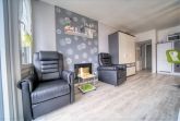 Der Wohn-/Schlafbereich ist mit Doppelbett ausgestattet. Die Küche verfügt über Ceranfeld, Backofen, Mikrowelle, Geschirrspüler, Kühlschrank, Toaster, Wasserkocher und Filterkaffeemaschine. Das moderne Bad bietet Dusche und WC, Laminatfußboden sorgt für ein angenehmes Wohnklima.