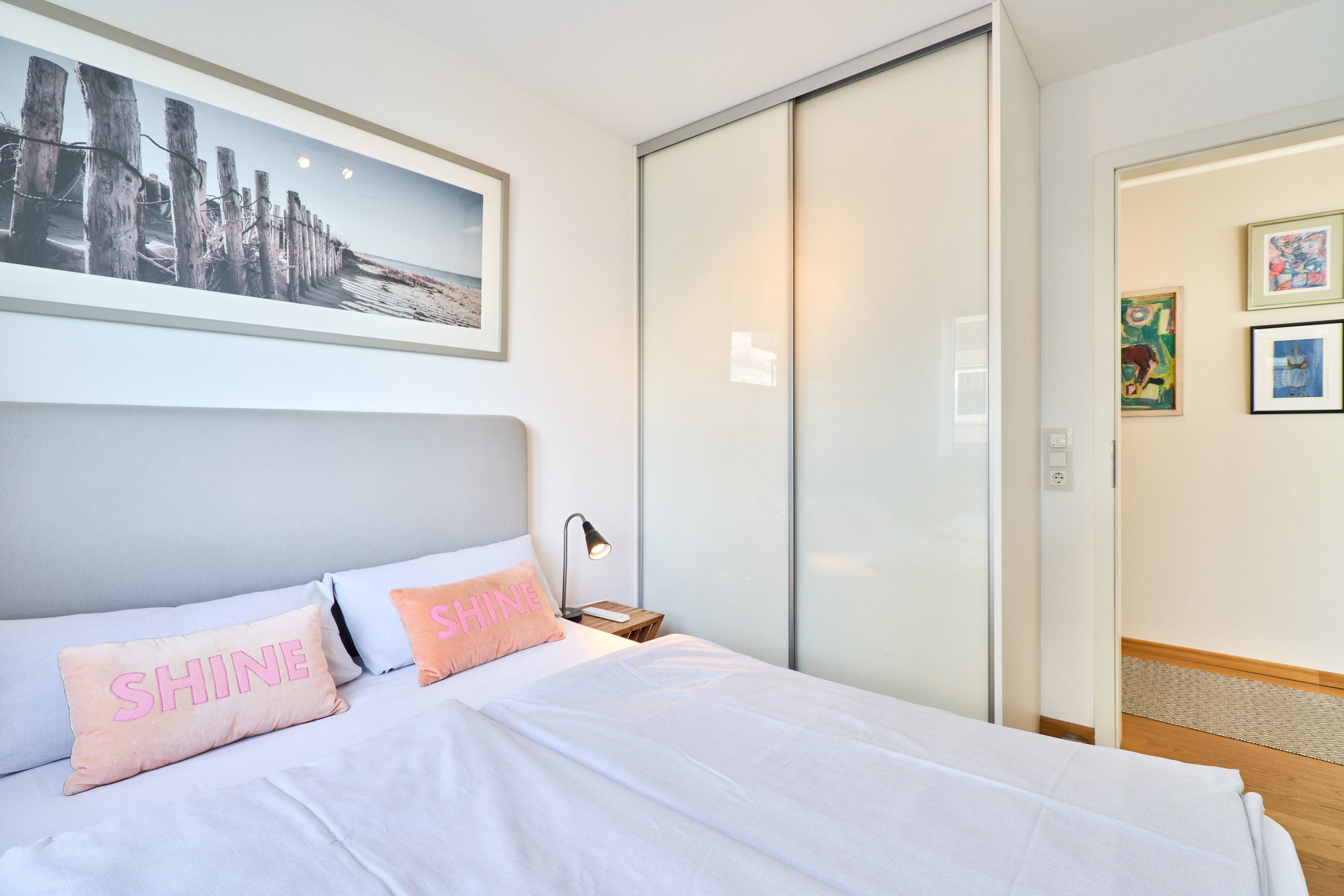 Das große Schlafzimmer ist mit einem Doppelbett (180 x 200m) und einem geräumigen Kleiderschrank ausgestattet. Das zweite Schlafzimmer verfügt über ein französisches Doppelbett (160 x 200m), einen Flach-TV und einen Kleiderschrank. Die beiden Tageslichtbäder haben jeweils eine ebenerdige Duschkabine. In dem zweiten Badezimmer befindet sich eine Waschmaschine mit Trocknerfunktion.