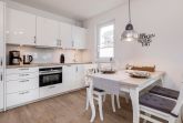Diese geschmackvoll im Landhausstil eingerichtete Ferienwohnung bietet Ihnen einen gemütlichen Wohnbereich mit Couch und Sessel. Die Couch ist mit wenigen Handgriffen in eine bequeme Schlafcouch umwandelbar. Neben dem Flachbildfernseher und dem Blu-ray-Player steht Ihnen eine Stereoanlage zur Verfügung. Kostenloses WLAN ist selbstverständlich. Die Terrasse Richtung Süden ist mit Tisch und Stühlen ausgestattet. Die moderne Küche ist komplett ausgestattet und der Esstisch lädt zu geselligen Abenden ein. Das Schlafzimmer ist mit einem geräumigen Schrank und einem komfortablen Doppelbett (1,80x2,00m, durchgehender Topper ) und einem Flachbildfernseher ausgestattet. Zur Verdunkelung sind Plissees angebracht. Das helle Tageslichtbad verfügt über eine bodentiefe Dusche und einen großen Spiegel. Neben der Fußbodenheizung ist hier ein zusätzlicher Handtuchheizkörper angebracht.