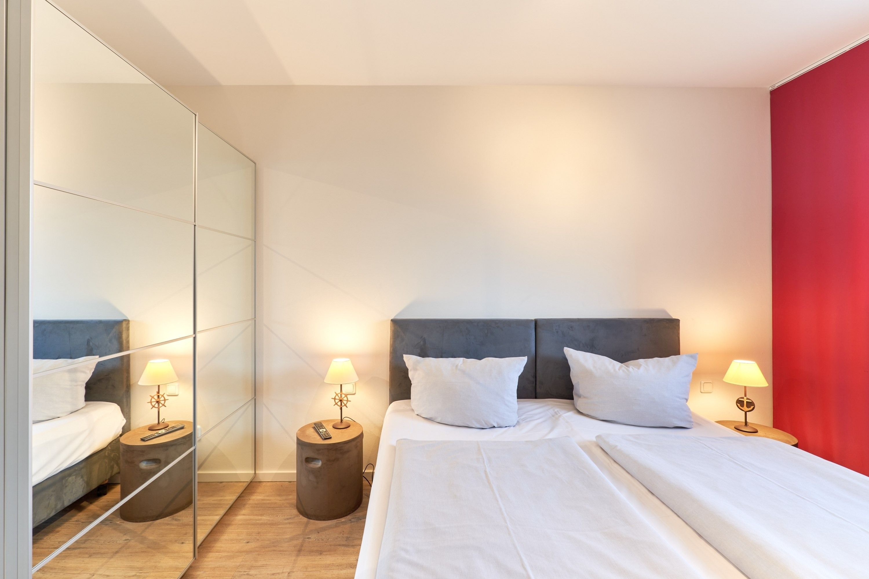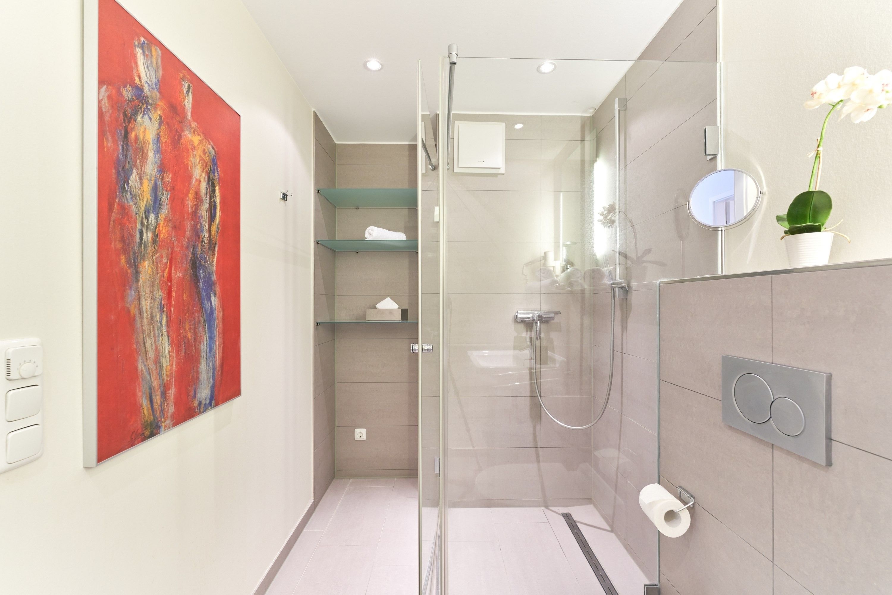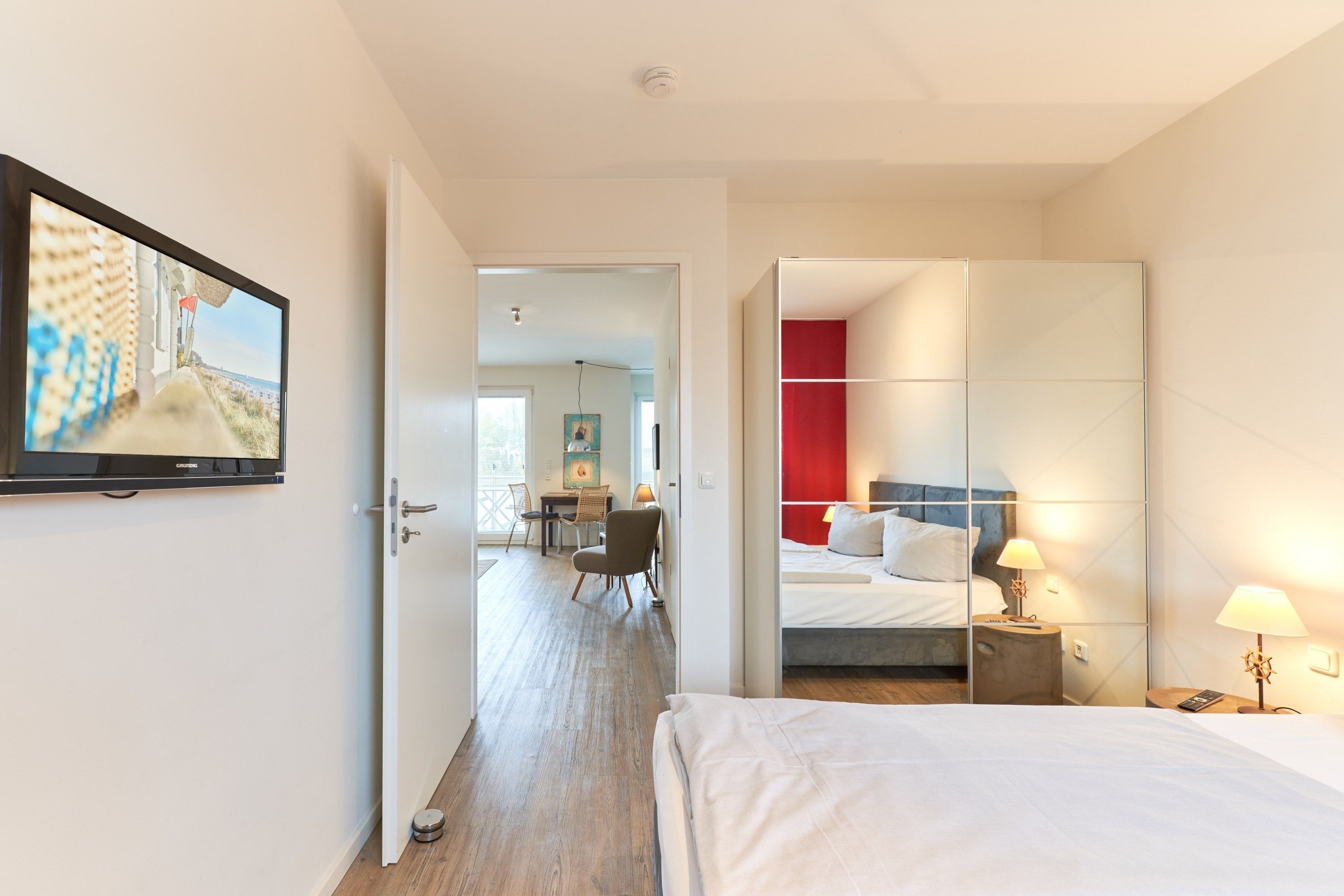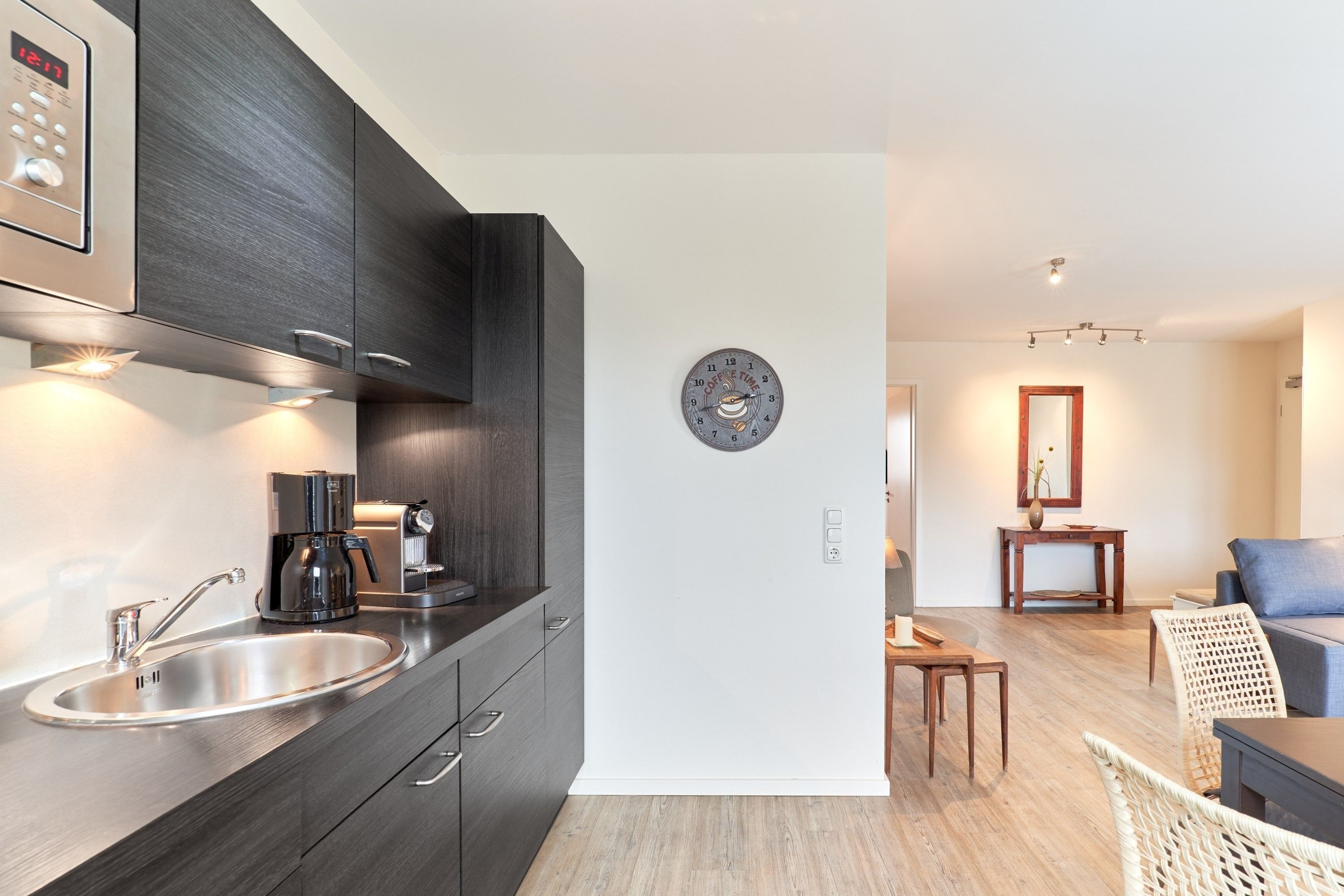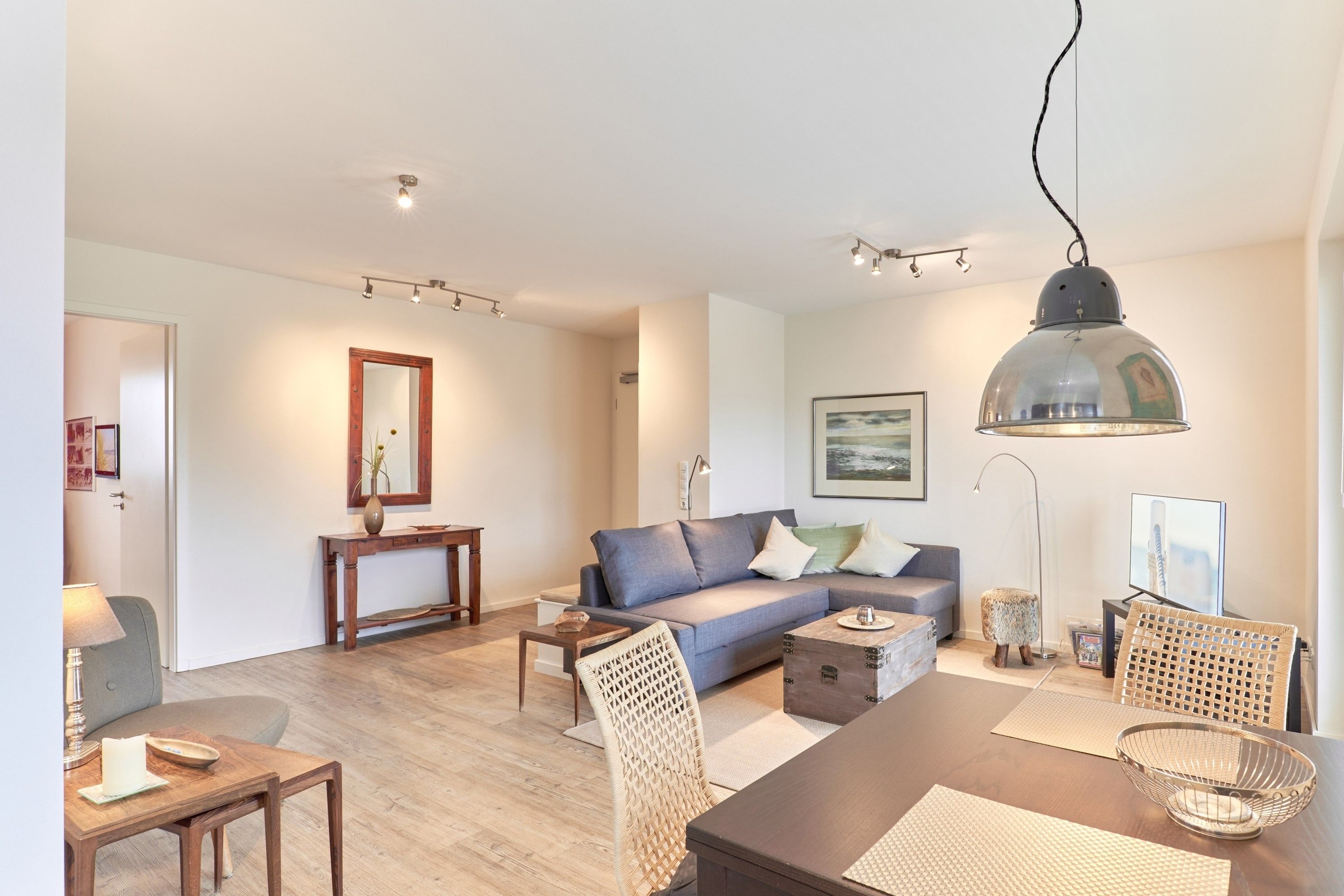 Diese Ferienwohnung bietet Ihnen einen gemütlichen Wohn-Essbereich mit offener Küche. Das gemütliche Sofa lässt sich mit nur wenigen Handgriffen zu einem Schlafsofa umfunktionieren. Neben dem Flachbildfernseher steht Ihnen ein CD-Player zur Verfügung. Kostenloses WLAN ist selbstverständlich. Der überdachte Balkon ist mit Tisch und Stühlen ausgestattet und lädt Sie auf einen Sundowner in der Nachmittag- und Abendsonne ein. Im Schlafzimmer stehen ein bequemes Doppelbett (1,80 x 2,00m) sowie ein geräumiger Schrank. Ein Flachbildfernseher sorgt für Unterhaltung und Verdunkelungsplissees ermöglichen einen erholsamen Schlaf. Das Badezimmer verfügt über eine bodentiefe Dusche und einen großen, beleuchteten Spiegel. Neben der Fußbodenheizung ist hier ein zusätzlicher Handtuchheizkörper angebracht.