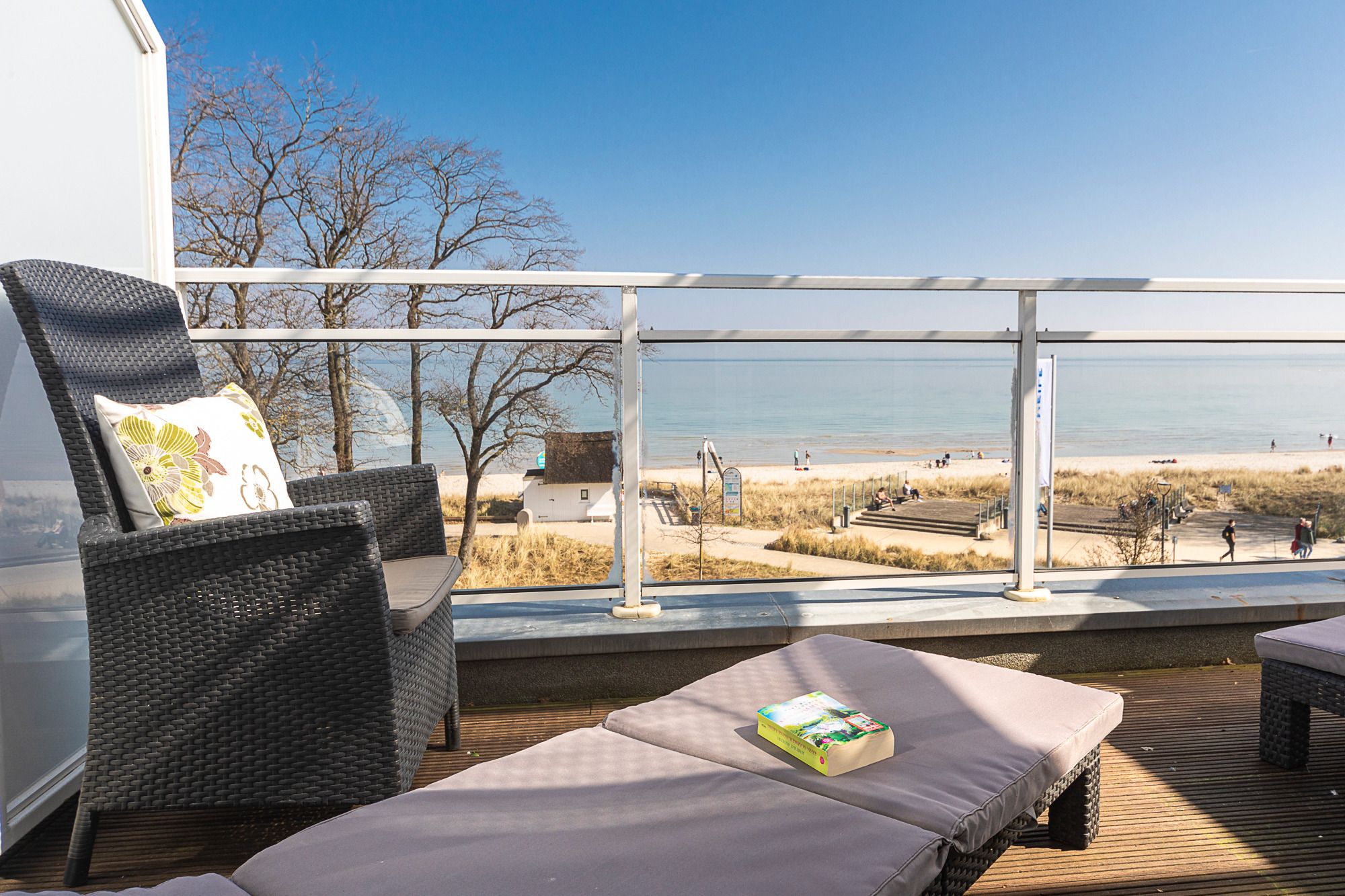 Diese Ferienwohnung liegt gegenüber dem schönen Strand von Scharbeutz und bietet Ihnen von beiden Ebenen einen traumhaften Blick über die Lübecker Bucht. Sie liegt nur wenige Gehminuten von der Dünenmeile entfernt. Die ausgewählten Kochbücher sind ein nettes Extra und machen Lust auf regionale Rezepte. Ein Kfz-Außenstellplatz steht Ihnen zur Verfügung. Des Weiteren ist ein Tiefgaragenstellplatz optional buchbar. Im Keller stehen Ihnen für diese Ferienwohnung Waschmaschine und Wäschetrockner zur Verfügung, sowie ein abgeschlossener Kellerraum für Ihre Fahrräder. Während Ihres Aufenthaltes erwartet Sie während der Saison (15.05. – 15.09.) ein kostenloser Strandkorb am Strand. Ein Kinderreisebett und ein Hochstuhl stehen, bei Bedarf, für Ihr Kind bereit.
