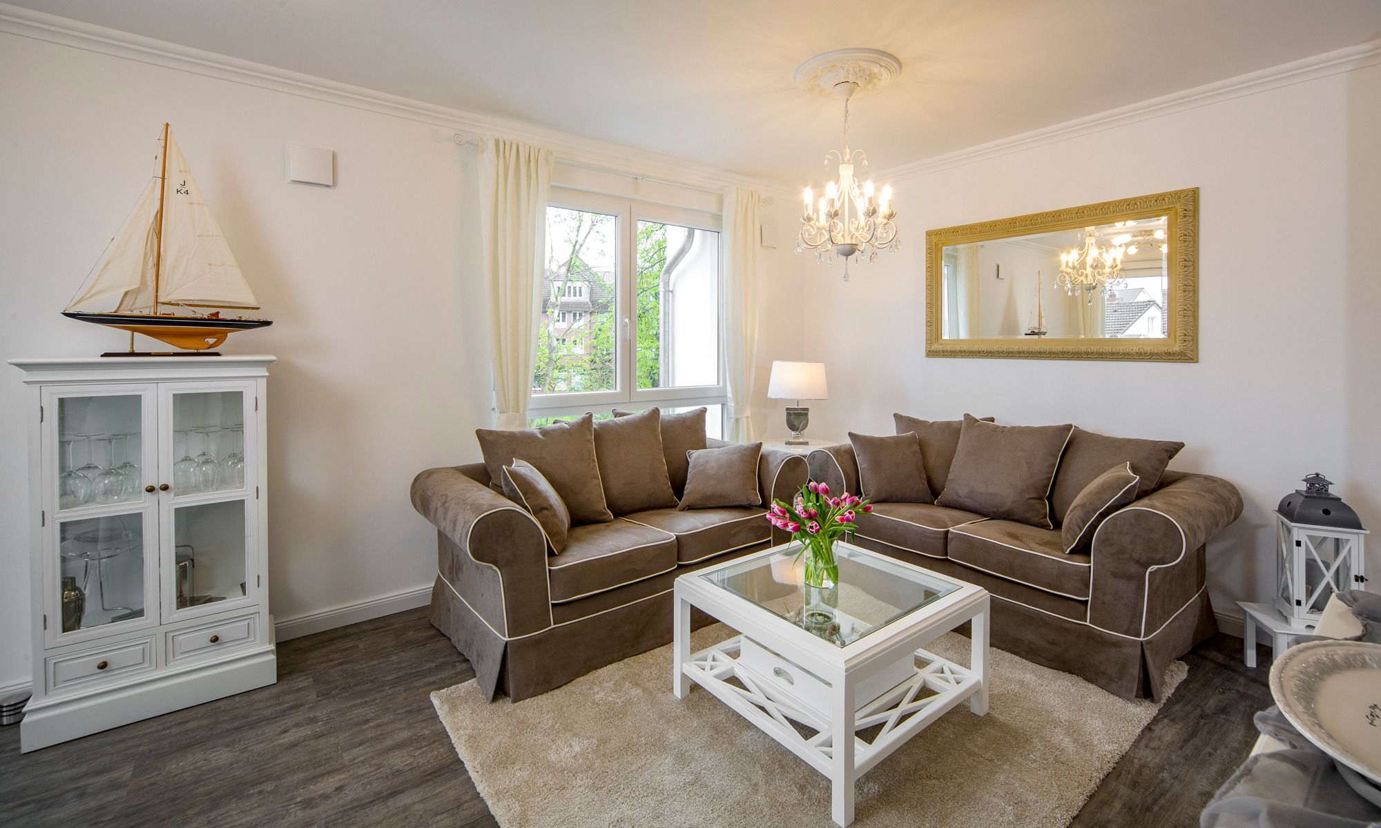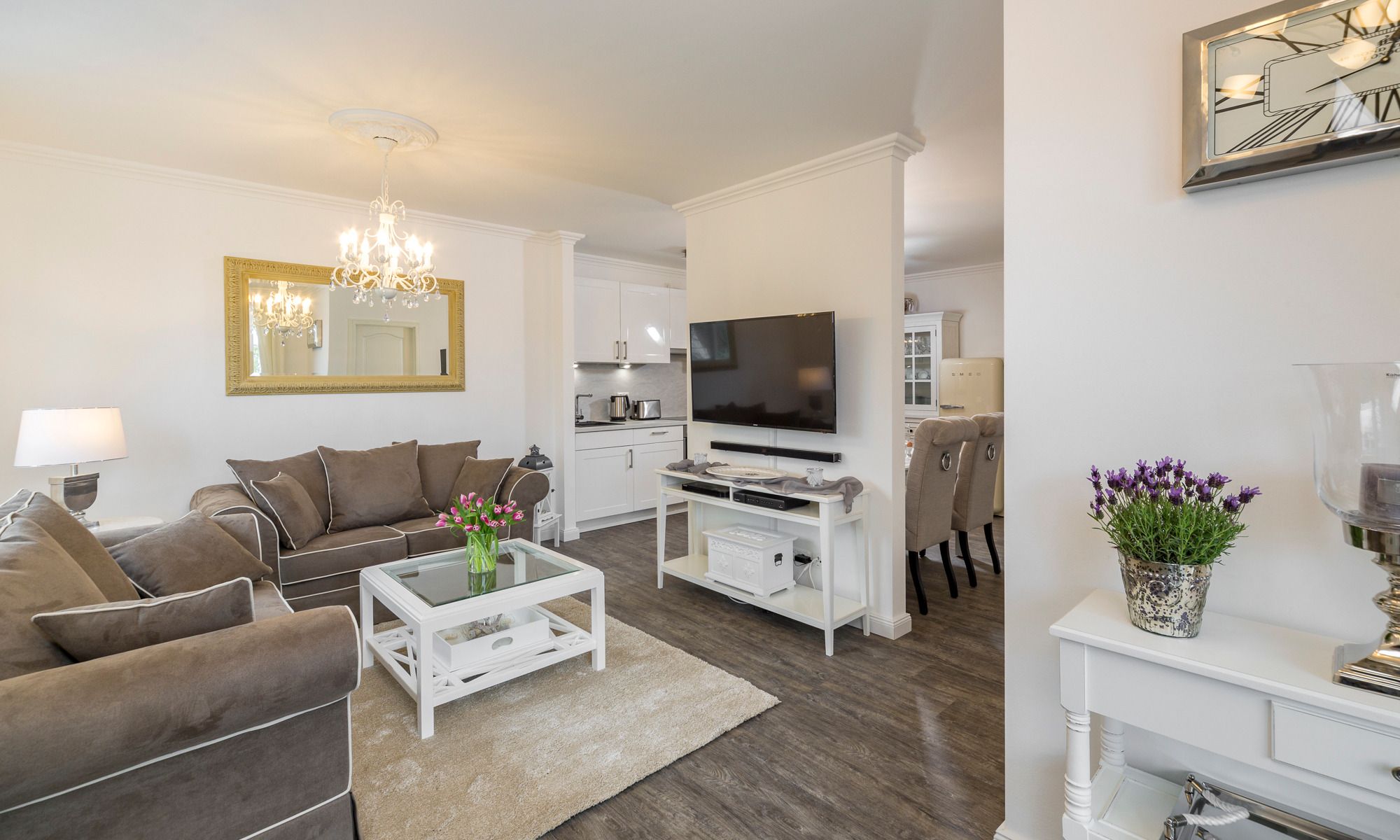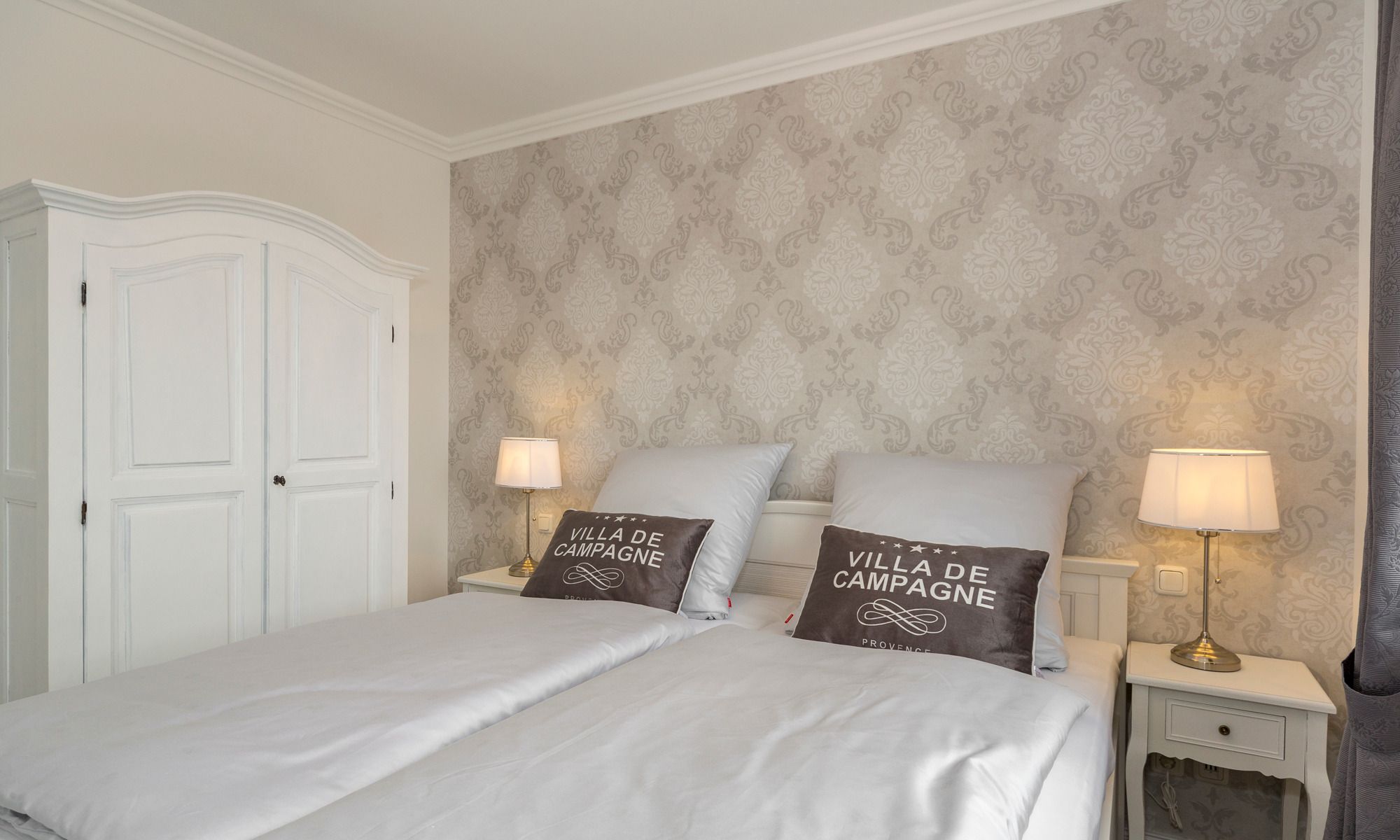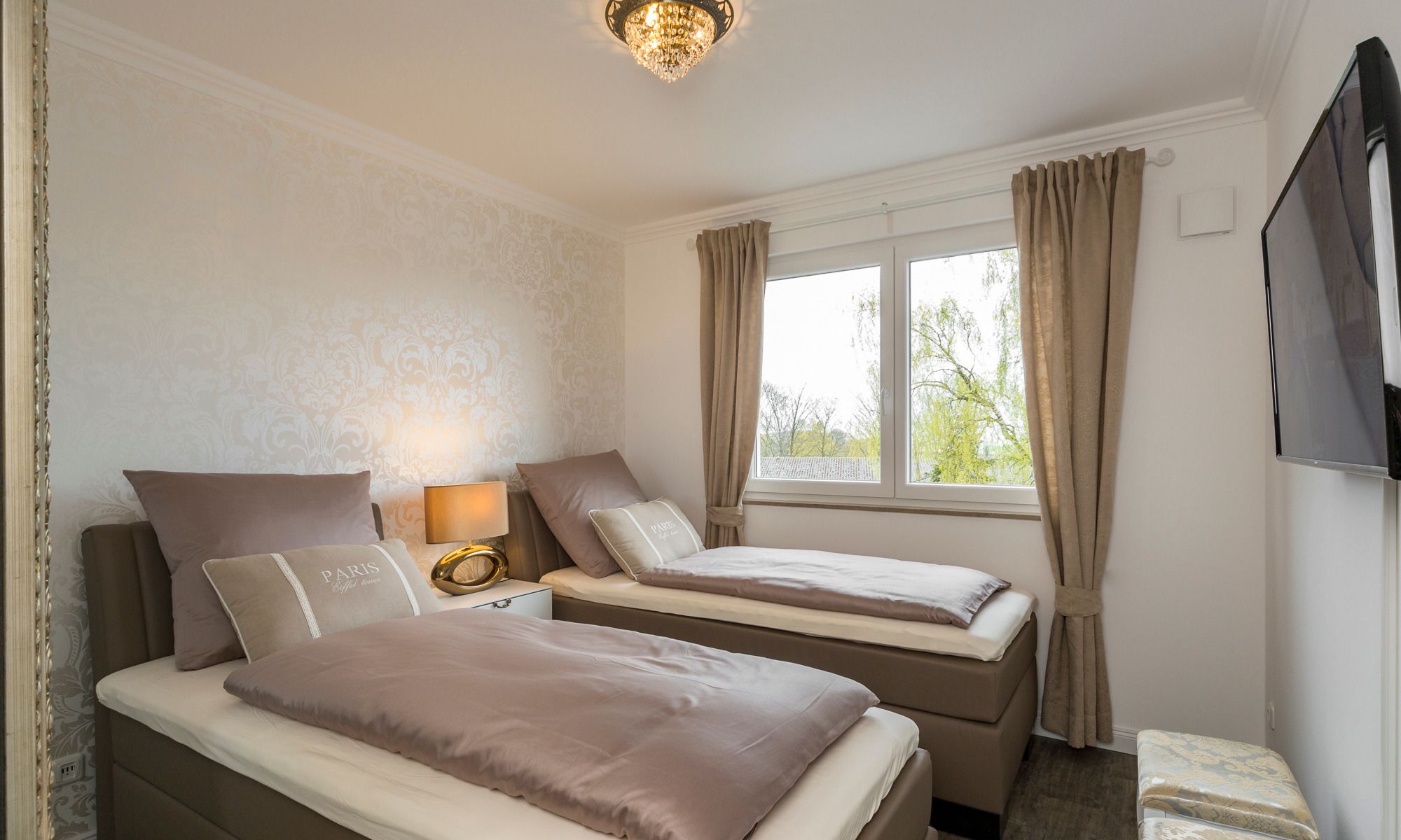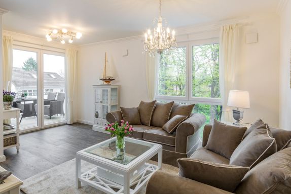 3-Zimmerwohnung Sunrise Suite, 2 Bäder, 2 Schlafzimmer, Tiefgaragenstellplatz (Durchfahrtshöhe 2,10 m) in der Strandvilla Augustusbad, bis zu vier Personen.