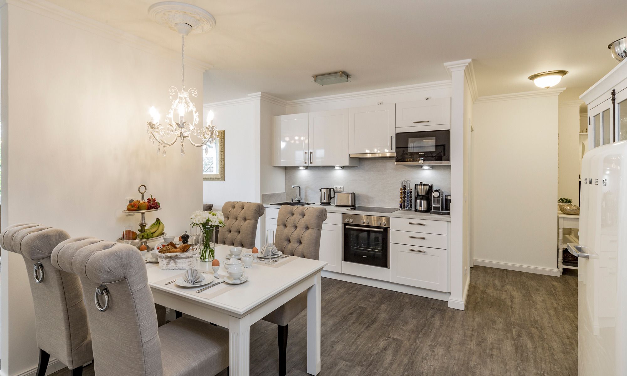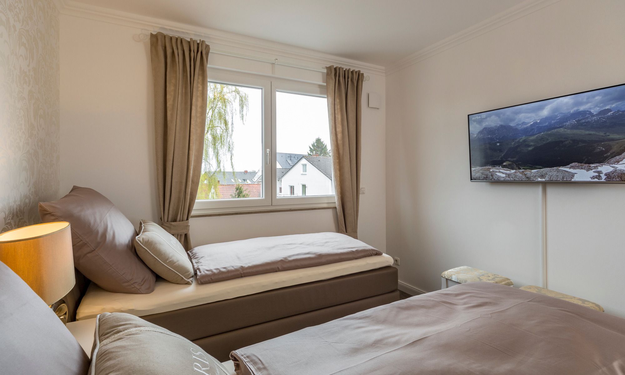 Zur sicheren Unterbringung Ihres fahrbaren Untersatzes steht Ihnen ein Tiefgaragenstellplatz (Wöhr-Parksystem) zur Verfügung. Die im zweiten Stockwerk gelegene 74 qm große Wohnung ist bequem mit dem Fahrstuhl zu erreichen. Neben einer technisch voll ausgestatteten Küche inkl. modernster Siemens-Elektrogeräte und einem gemütlichen Essbereich, der zum Verweilen einlädt, gewährt Ihnen das großzügige und helle Wohnzimmer Behaglichkeit und Unterhaltung, wann immer Sie es wünschen (Ultra-HD-Smart-Flatscreen, Soundbar, Blu-ray-Player). Zudem steht Ihnen in der gesamten Wohnung kostenloses WLAN zur Verfügung. Da uns Ihr geruhsamer Schlaf am Herzen liegt, sind die Schlafzimmer mit verstellbaren Lattenrosten sowie Tonnentaschenfederkern-Matratzen mit Thermogelauflagen in verschiedenen Härtegraden einerseits und modernen Boxspringeinzelbetten, welche sich bei Bedarf im Handumdrehen zusammenstellen lassen, mit 7-Zonen-Tonnentaschenfederkern-Matratzen andererseits ausgestattet.