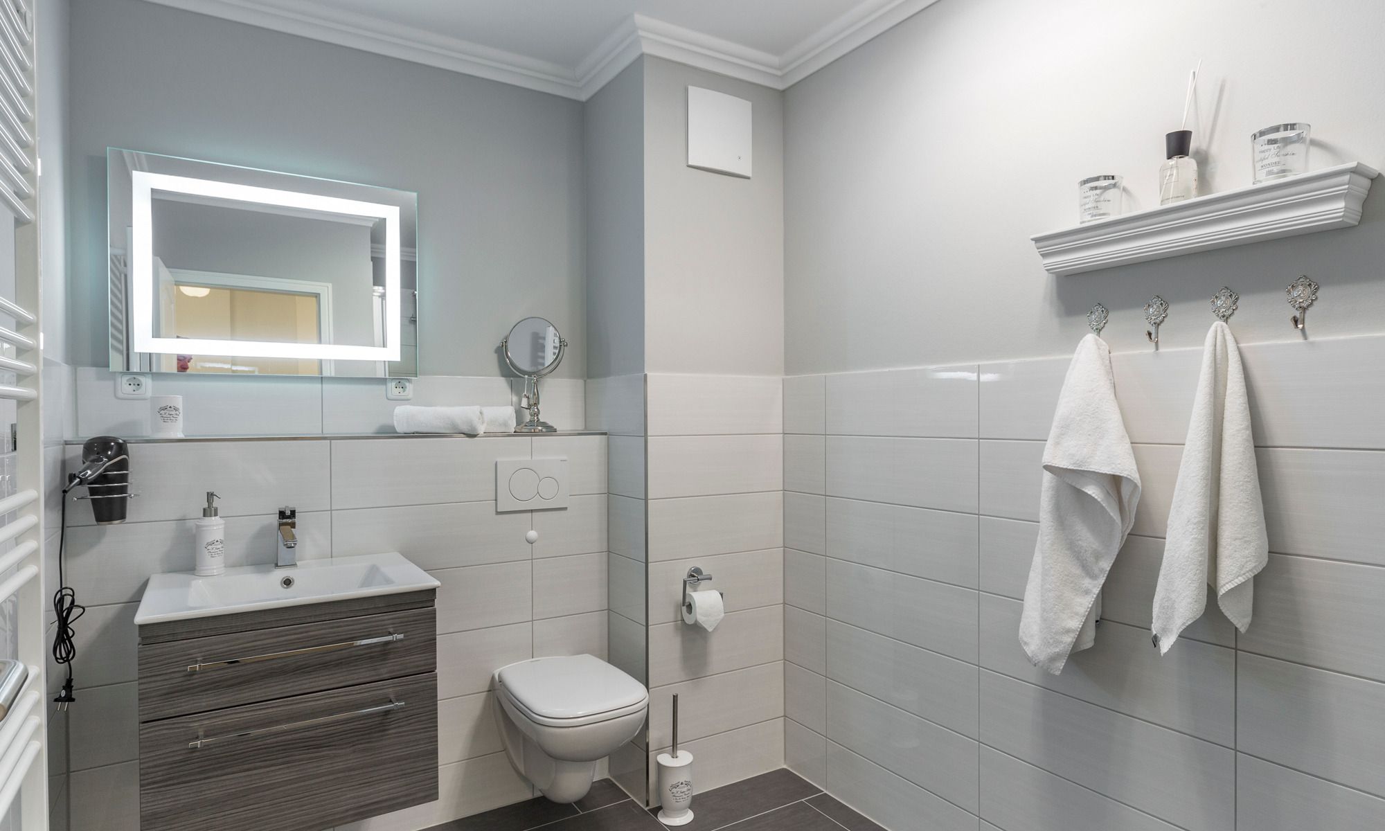 Darüber hinaus ist die gesamte Wohnung durch elektrische Außenjalousien abdunkelbar. Um Ihnen zusätzlich das nötige Maß an Flexibilität einzuräumen, verfügt das Appartement über zwei moderne, voll ausgestattete Duschbäder. Für Frischluftliebhaber bietet die südostlich ausgerichtete Loggia die Möglichkeit, traumhafte Sonnenaufgänge zu genießen. Der begehrte feinsandige Ostseestrand liegt Ihnen in wenigen Schritten zu Füßen; Ein Strandkorb steht Ihnen saisonbedingt (15.05. – 15.09.) zur Verfügung.