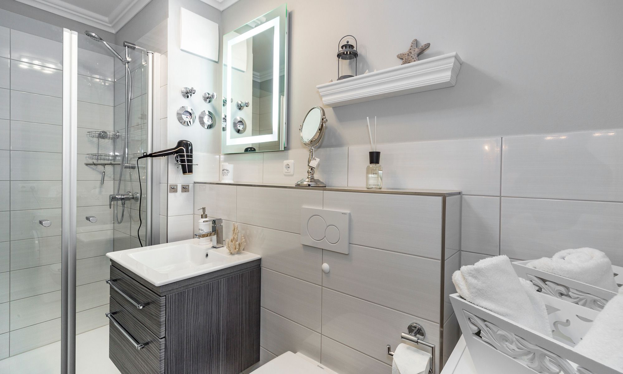 Entfliehen Sie allem Alltagsungemach bei einem Glas erlesenen Weines, während Ihnen die erfrischende Seeluft um die Nase weht. Für zusätzliche Behaglichkeit und warme Füße, auch an kühlen Tagen, sorgt die Fußbodenheizung. Beide Schlafräume verfügen über eigene Flatscreens. Für kleine Gäste stehen Hochstuhl und Reisebett parat.