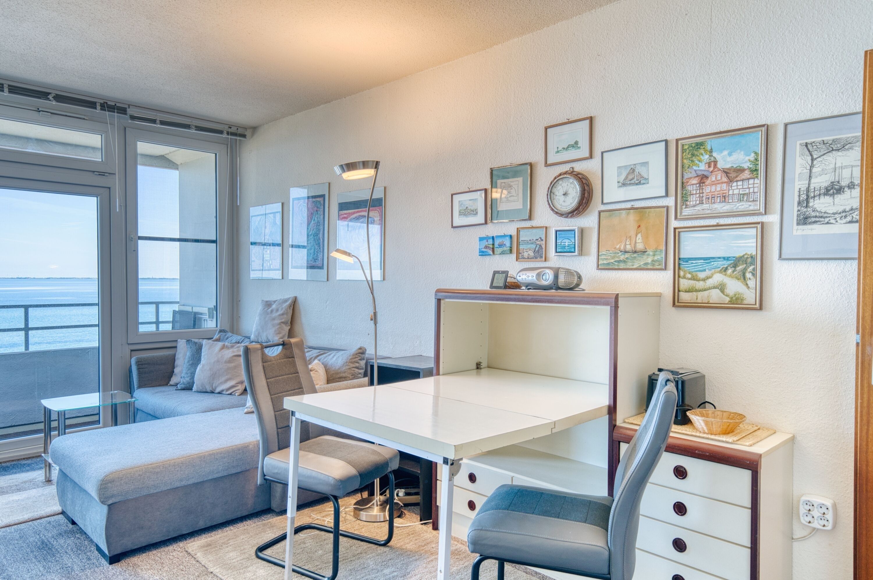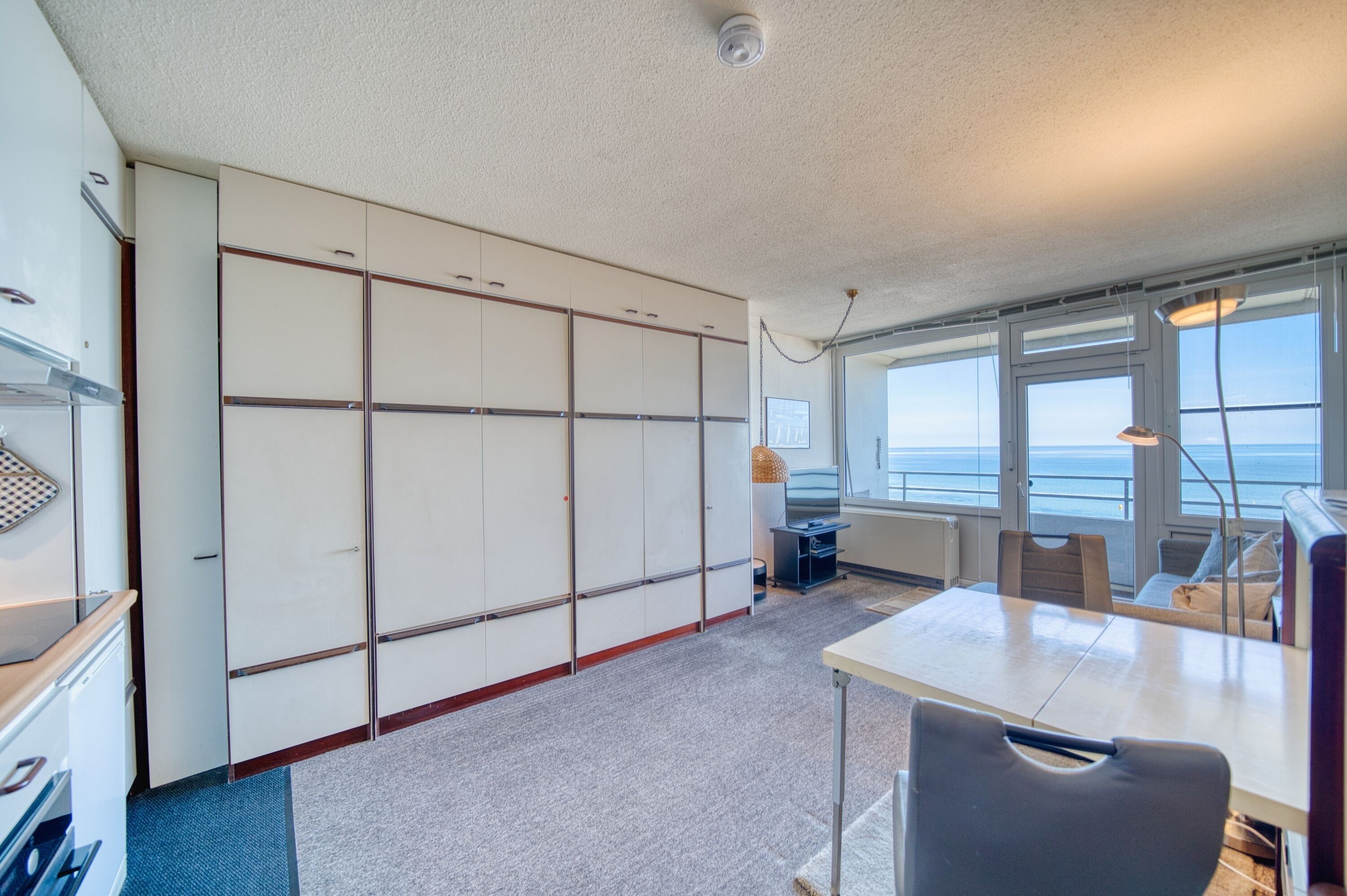 Diese gemütliche Ferienwohnung im 6. Geschoss des Hauses Steinwarder 37 bietet auf ca. 30 m² Platz für bis zu zwei Personen und einen schönen Blick auf die Ostsee. Der kombinierte Wohn-Schlafraum ist mit Schrankbetten ausgestattet, ergänzt durch eine Pantryküche, ein Badezimmer und einen Balkon mit Ostseeblick.