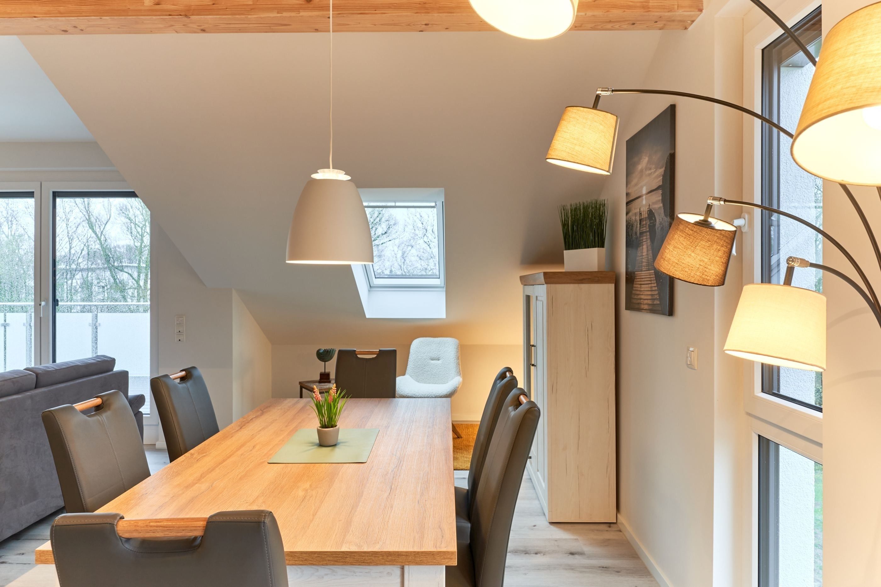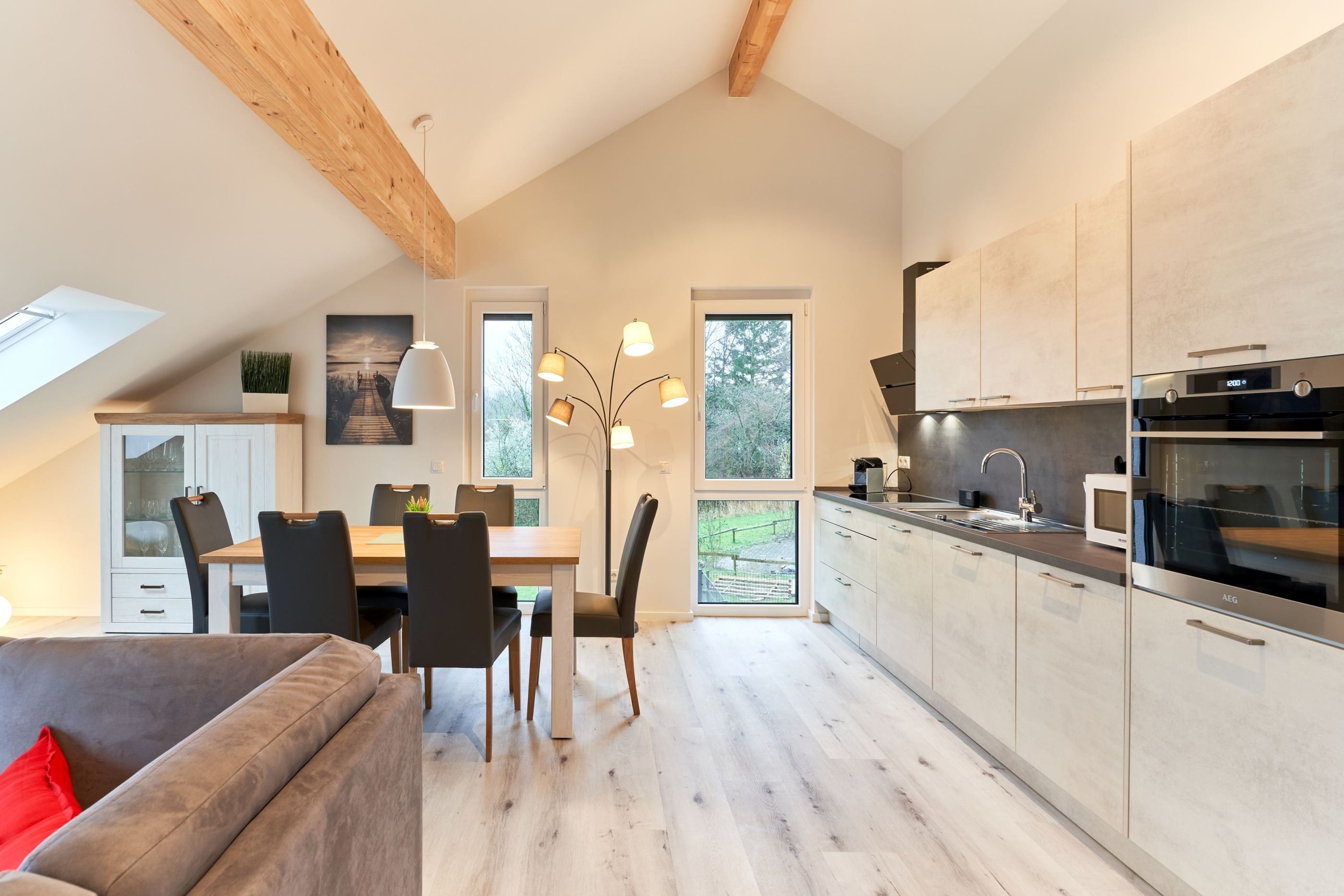 Genießen Sie Ihren Urlaub in dieser lichtdurchfluteten Ferienwohnung, die Ihnen mit ihren zwei geräumigen Schlafzimmern, 2 Duschbädern und dem großen Wohnzimmer mit integrierter Küchenzeile ihre wohlverdiente Entspannung bietet.
