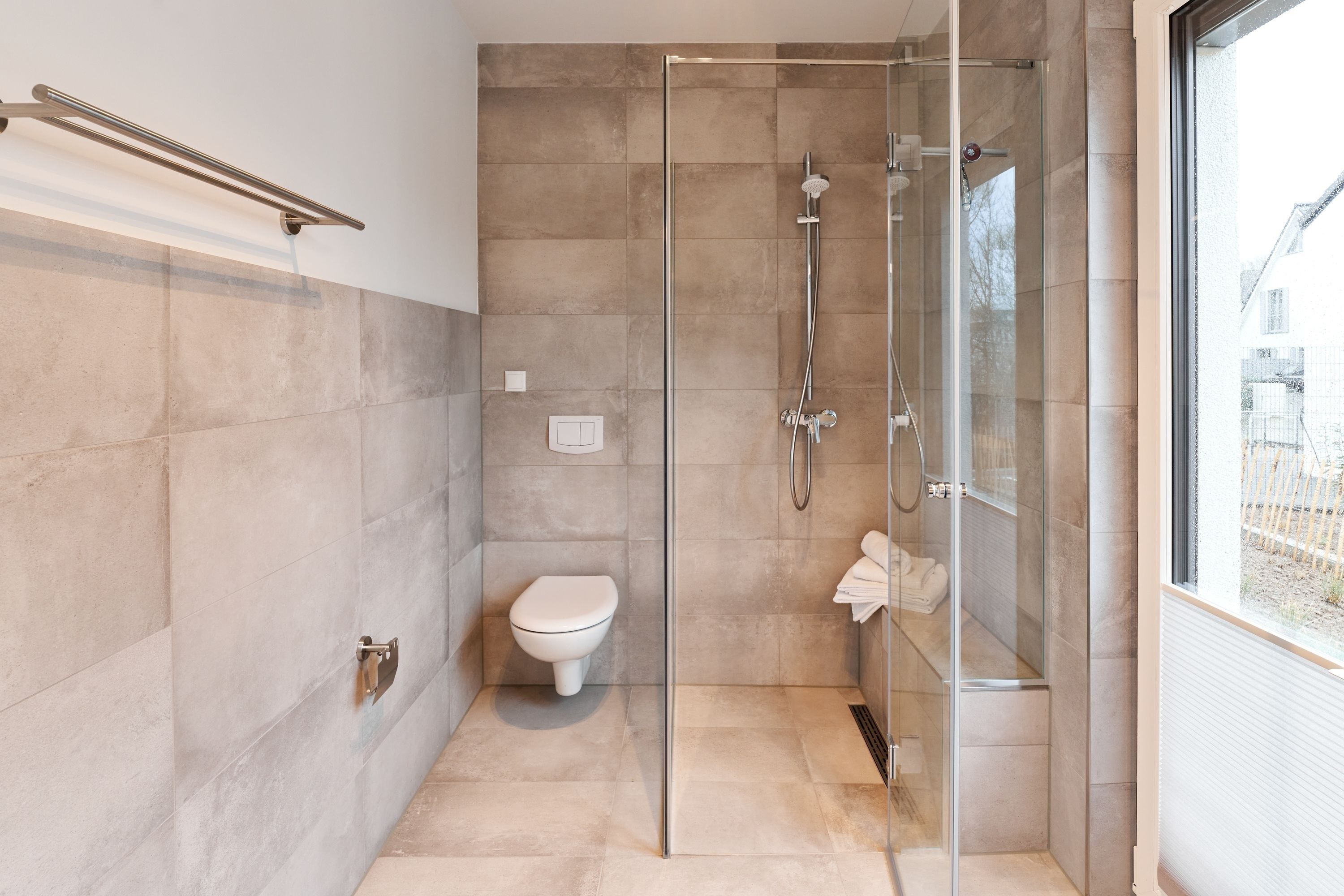 Ein kleiner Flurbereich trennt die beiden Schlafzimmer und das 2. Tageslicht-Duschbad. Im 2. Schlafzimmer ist kein TV vorhanden.