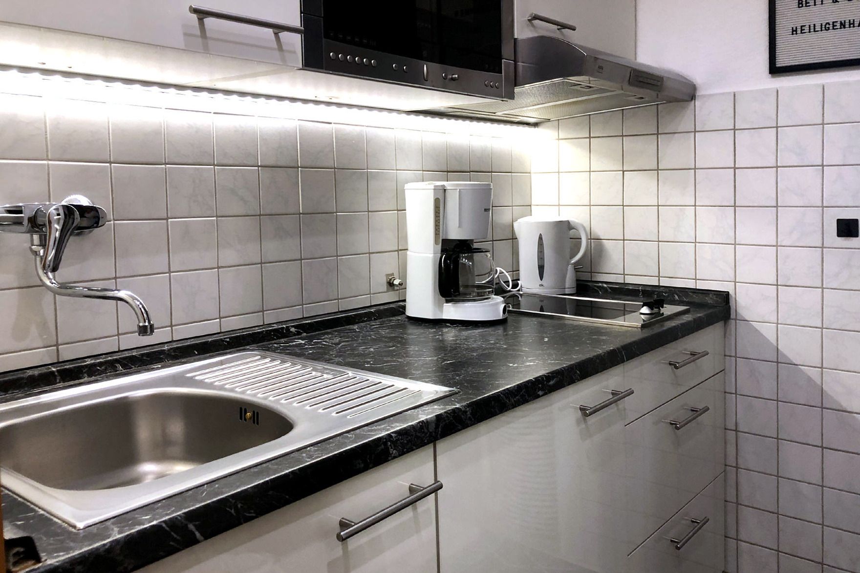 Wohn-/Schlafbereich mit Doppelbett und Schlafsofa, separates Schlafzimmer mit Doppelbett, TV in beiden Räumen, WLAN inklusive. Pantryküche mit Kühlschrank, 2-Platten-Herd, Mikrowelle, Kaffeemaschine, Wasserkocher und Toaster. Babybett, Kinderspielsachen, Eintritt „Schatzinsel“ inklusive. Saisonstrandkorb, Stellplatz nach Verfügbarkeit, Aufzug vorhanden.