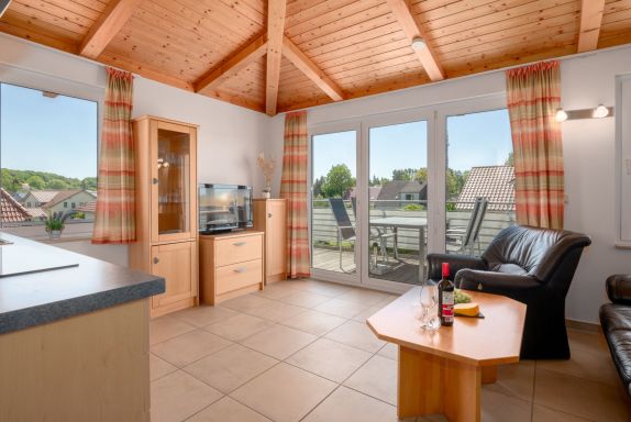 Die Dachgeschosswohnungen sind geeignet für bis zu 2 Personen und verfügen über einen großen Balkon sowie eine Wohnfläche von 48 m². Sie sind Nichtraucherwohnungen und bieten eine gehobene Ausstattung mit einer komplett ausgestatteten Küche, inklusive Mikrowelle, Backofen und Spülmaschine. Zudem gibt es SAT-TV in den Wohnungen. Das Badezimmer ist mit einer Dusche und einem WC ausgestattet. Ein Parkplatz ist im Preis inbegriffen.
