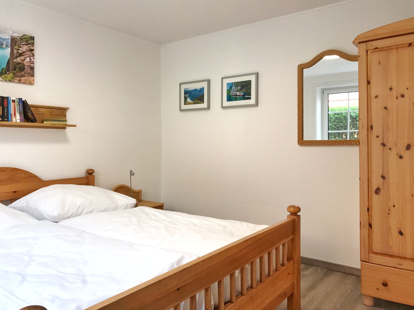 Die Ferienwohnung Fjorde befindet sich im Erdgeschoss des Haupthauses. Die Wohnung verfügt über ein Wohnzimmer mit Schlafcouch für 2 Personen, aus welchem Sie einen schönen Blick auf den Breeger Bodden und die vorbeifahrendenden Schiffe genießen. Außerdem gibt es ein Schlafzimmer mit Doppelbett, eine separate Küche und ein Bad (mit Dusche /WC). Zur Wohnung gehört ein Pkw-Stellplatz auf dem Grundstück.