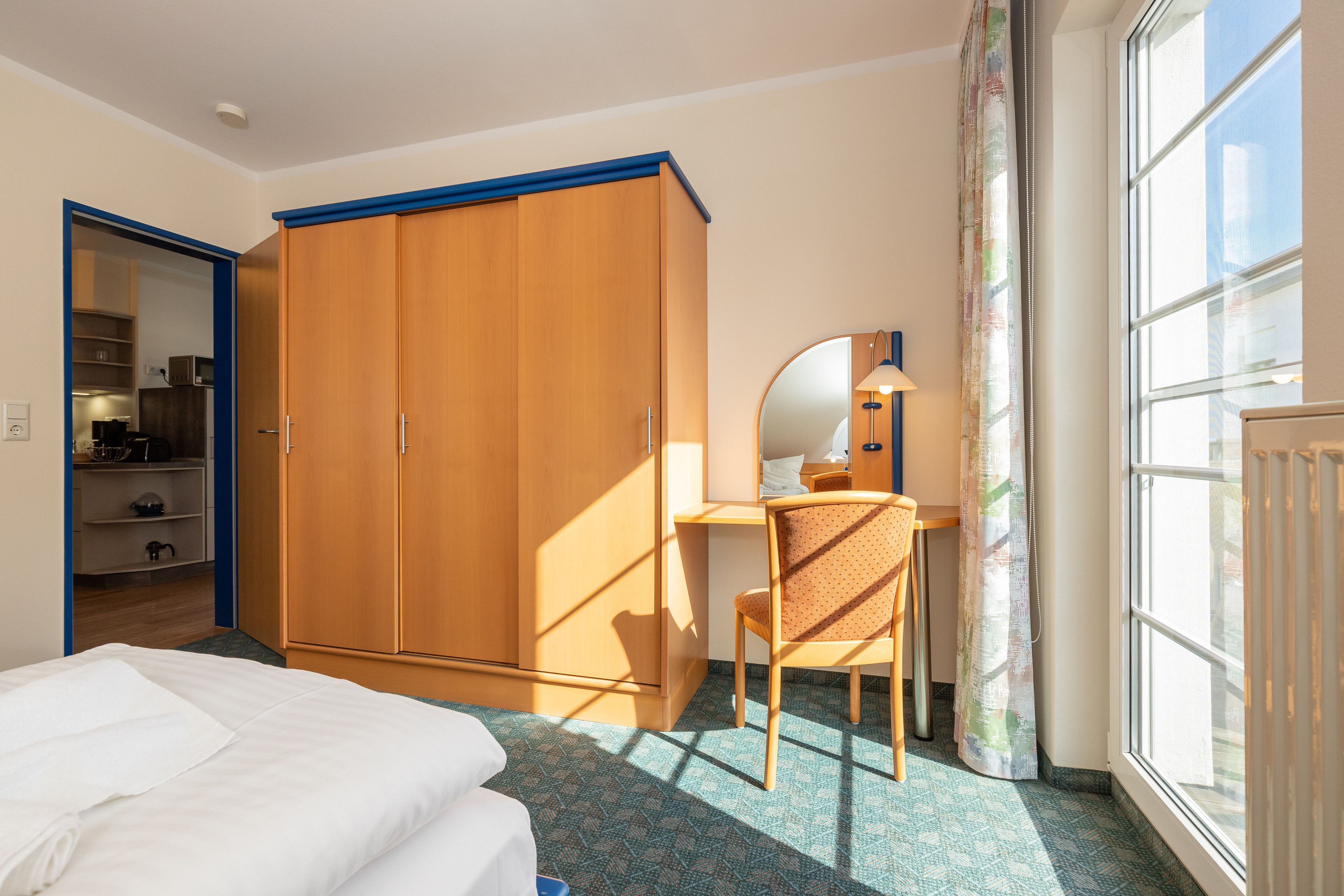 Die Nichtraucherwohnung befindet sich im Vorderhaus der Ferienanlage Margaretha. Zur Anlage gehört pro Wohnung ein Parkplatz auf dem Hof, sowie ein gemeinschaftlicher Fahrradraum.