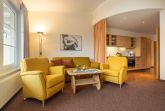 Das helle Wohnzimmer verfügt über eine Couchgarnitur, welche ebenso eine Aufbettung für 2 weitere Personen darstellt. Neben einem TV und einem kostenfreien WLAN-Zugang erreichen Sie von hier aus den sonnigen Balkon inkl. Balkonmöbel.