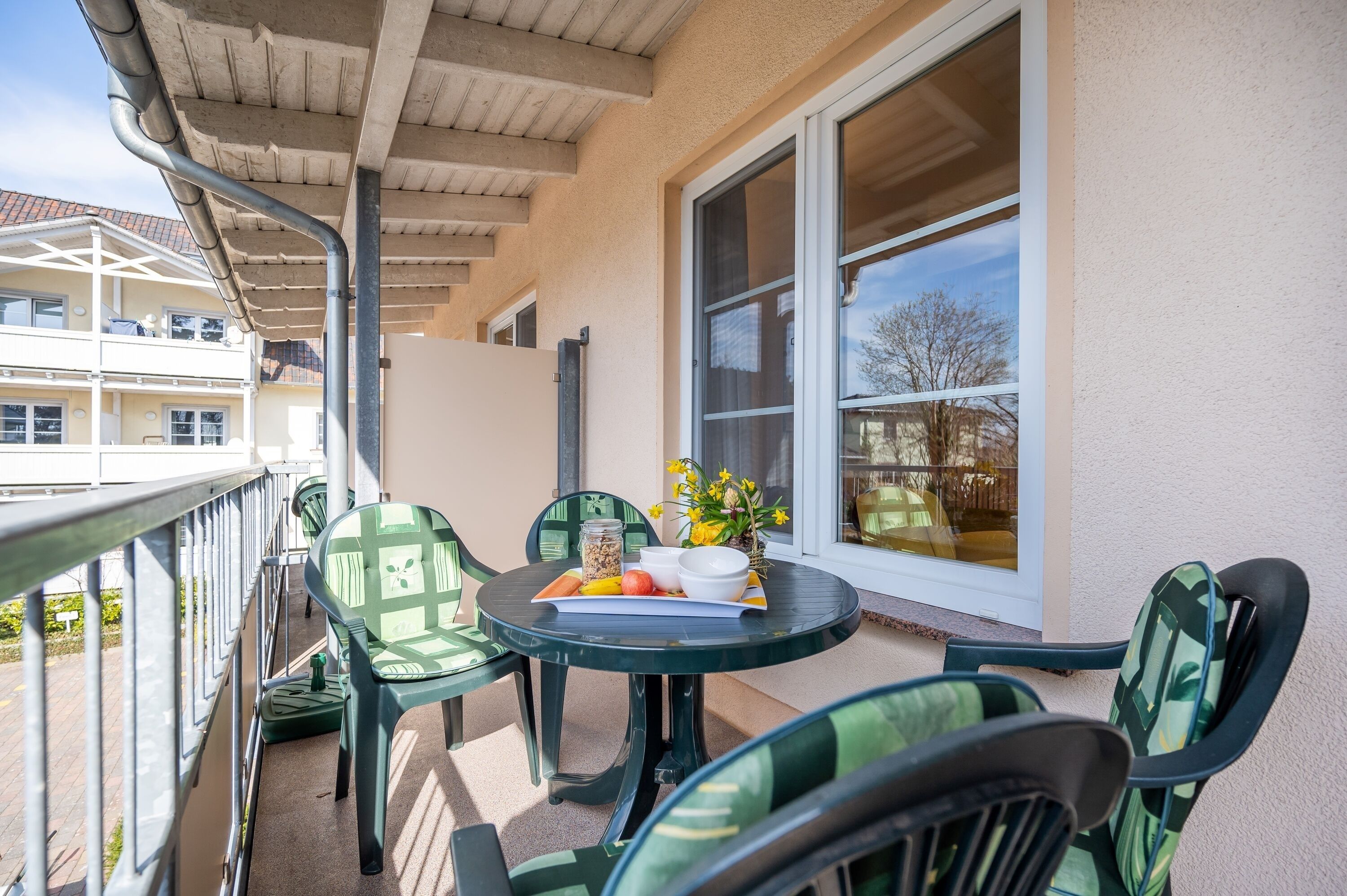 Die behindertenfreundliche Nichtraucherwohnung befindet sich im Hinterhaus der Ferienanlage Margaretha. Zur Anlage gehört pro Wohnung ein Parkplatz auf dem Hof, sowie ein gemeinschaftlicher Fahrradraum.