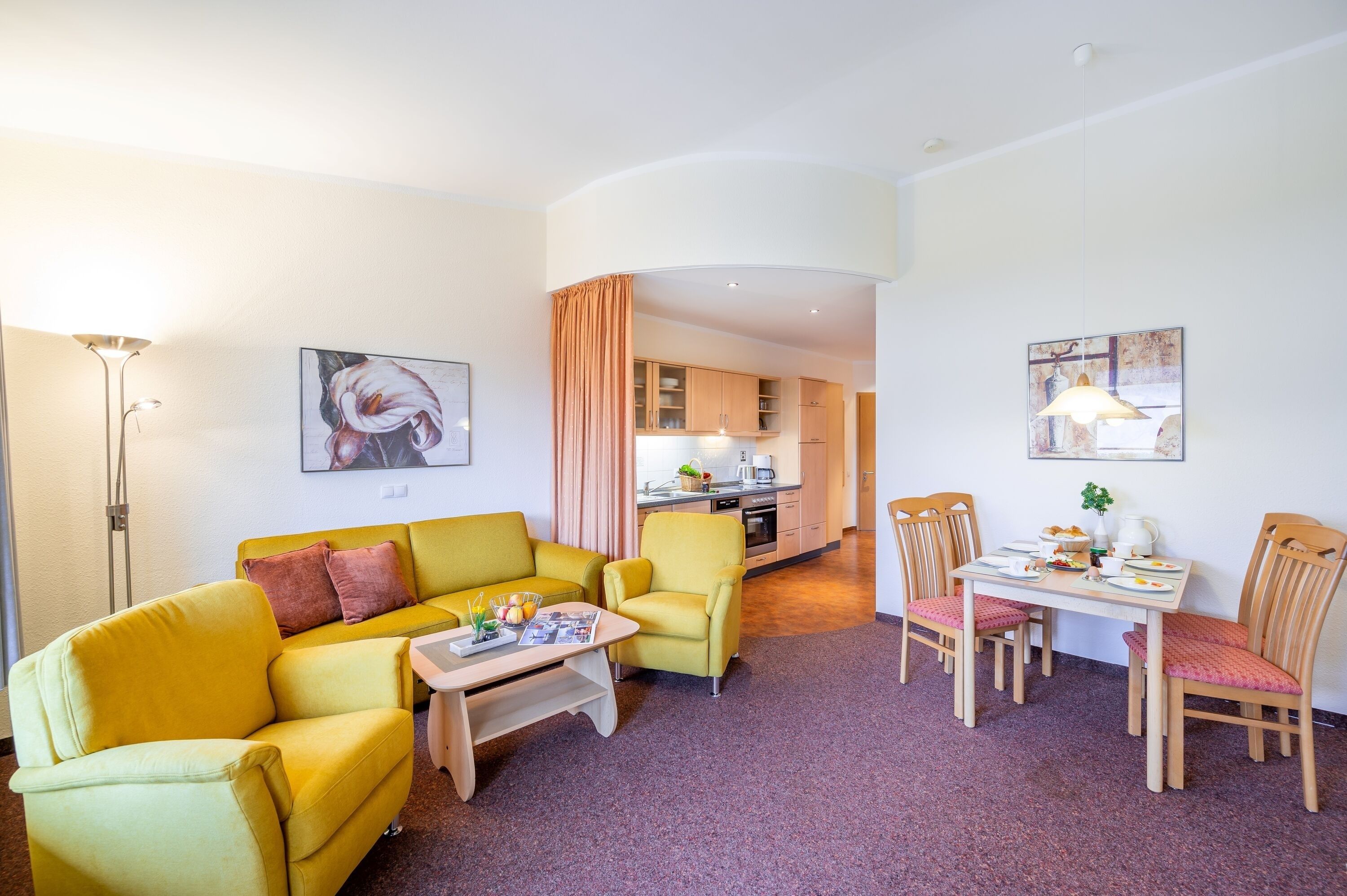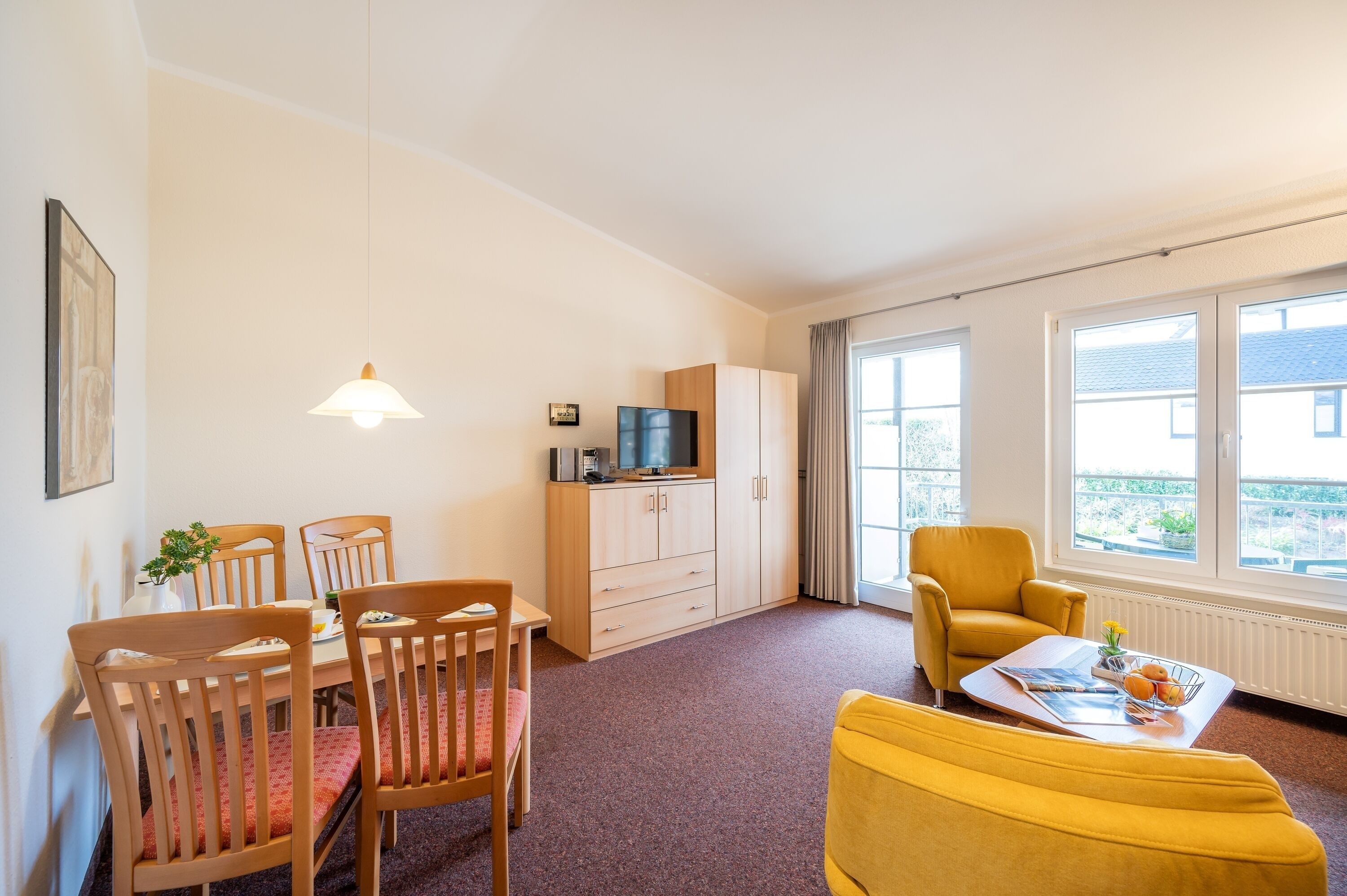 Die freundlich eingerichtete Wohnung 15 in der Ferienanlage Margaretha ist ca. 58 m² groß und für bis zu 4 Personen ausgelegt.