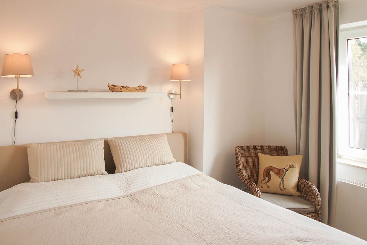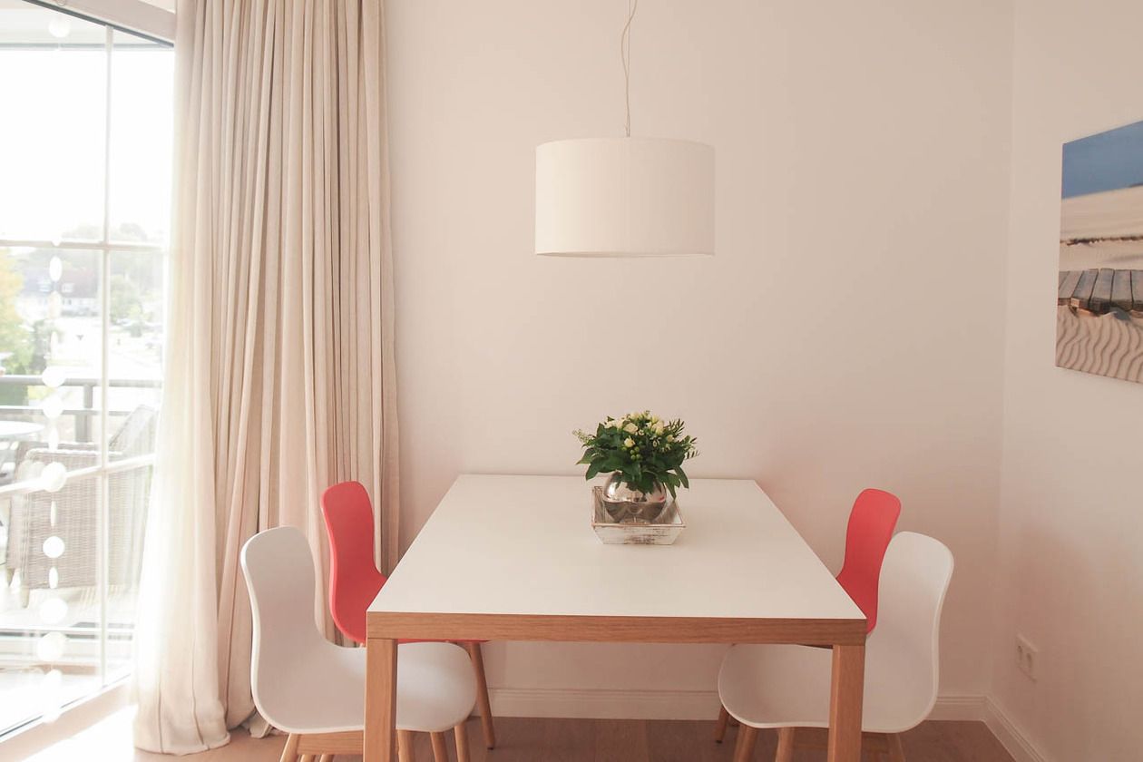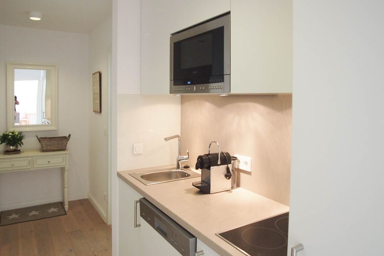 Die hochwertig eingerichtete Ferienwohnung ist dank der Ausrichtung zum Südwesten hell und lichtdurchflutet. Der sonnige Balkon ist mit gemütlichen Gartenmöbeln ausgestattet und bietet zu jeder Tageszeit einen idealen Rückzugsort. Echtholzparkett und bodentiefe Fensterelemente schaffen ein angenehmes Raumklima. Der Wohnbereich ist mit einem Sofa, einem Essbereich für 4 Personen und einer Leseecke ausgestattet. TV, Radio und kostenloser Internetzugang über WLAN sind vorhanden. Die moderne Küchenzeile ist bestens ausgestattet und verfügt über Geschirrspülmaschine und Mikrowelle mit Backfunktion. Das Schlafzimmer ist mit einem Doppelbett (180x200), Einbauschrank und einem zusätzlichen TV ausgestattet. Das moderne Bad mit großem Fenster verfügt über eine Dusche, Waschtisch, WC, Handtuchwärmer und Föhn. Ein Pkw Stellplatz befindet sich am Haus. Aufzug, Fahrradkeller (eine Platzgarantie für Ihre Fahrräder besteht nicht) sowie Waschmaschine und Trockner (Münzgeräte) sind vorhanden.