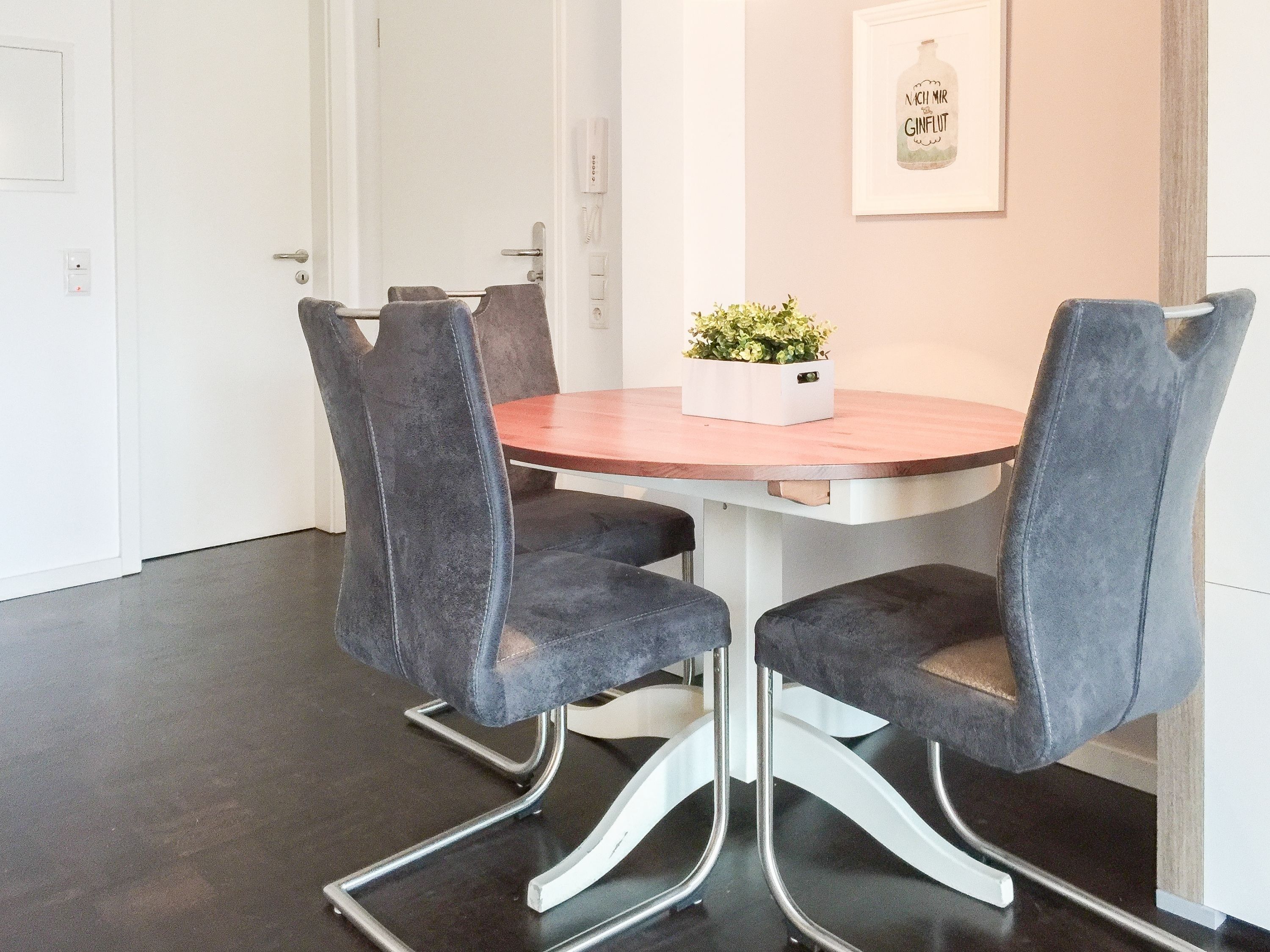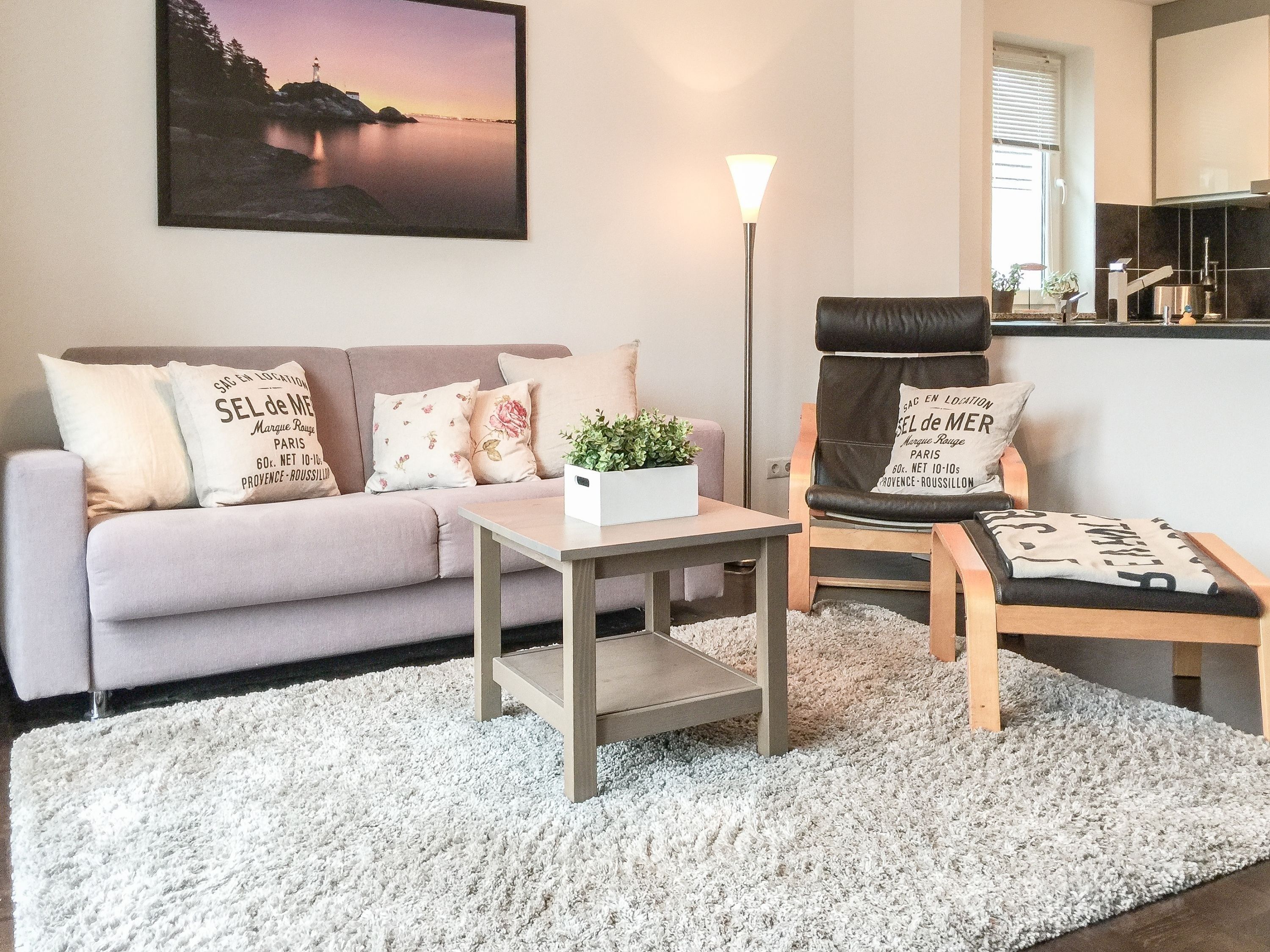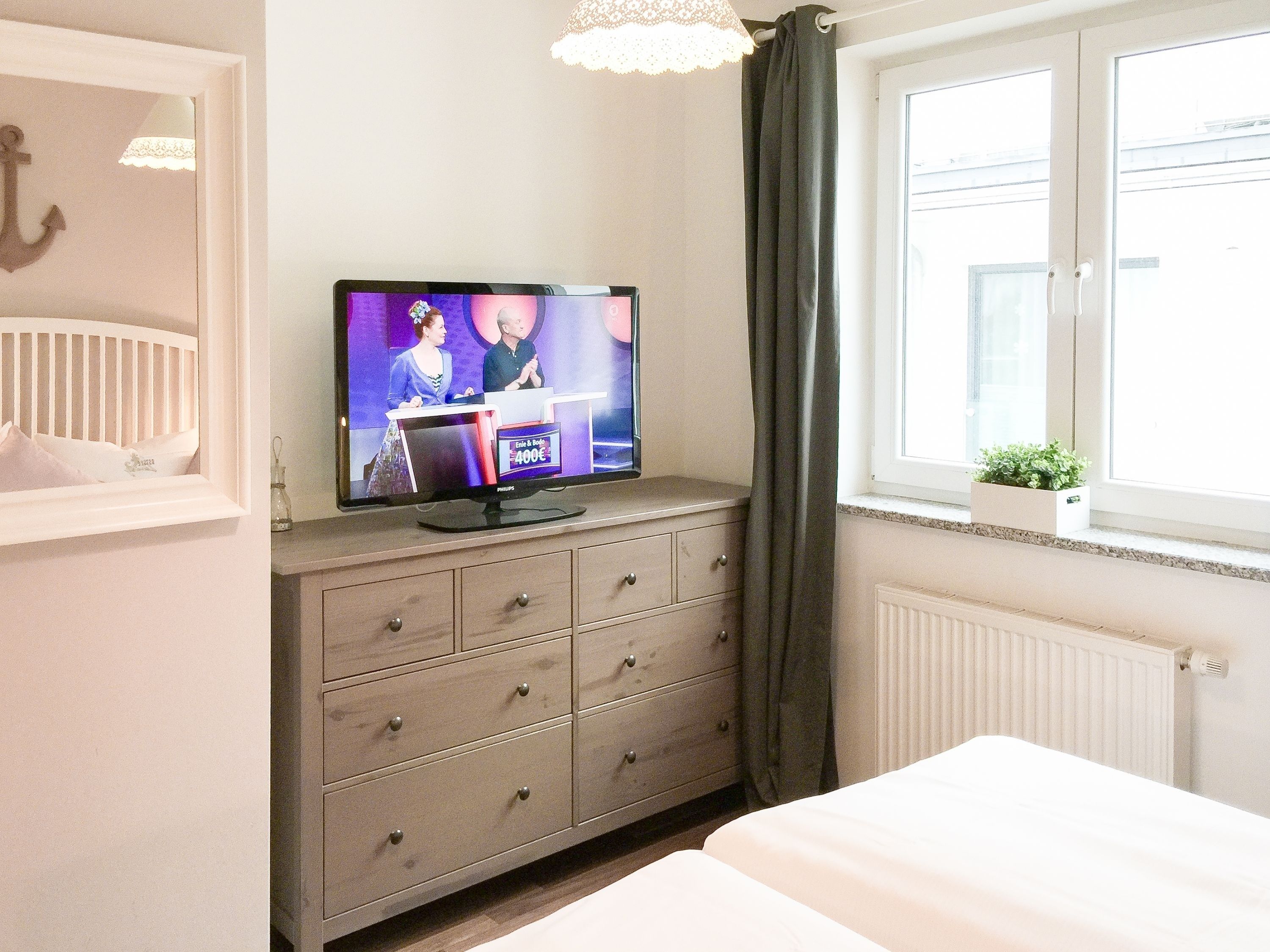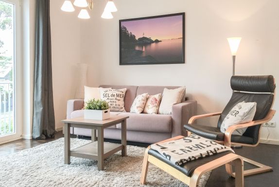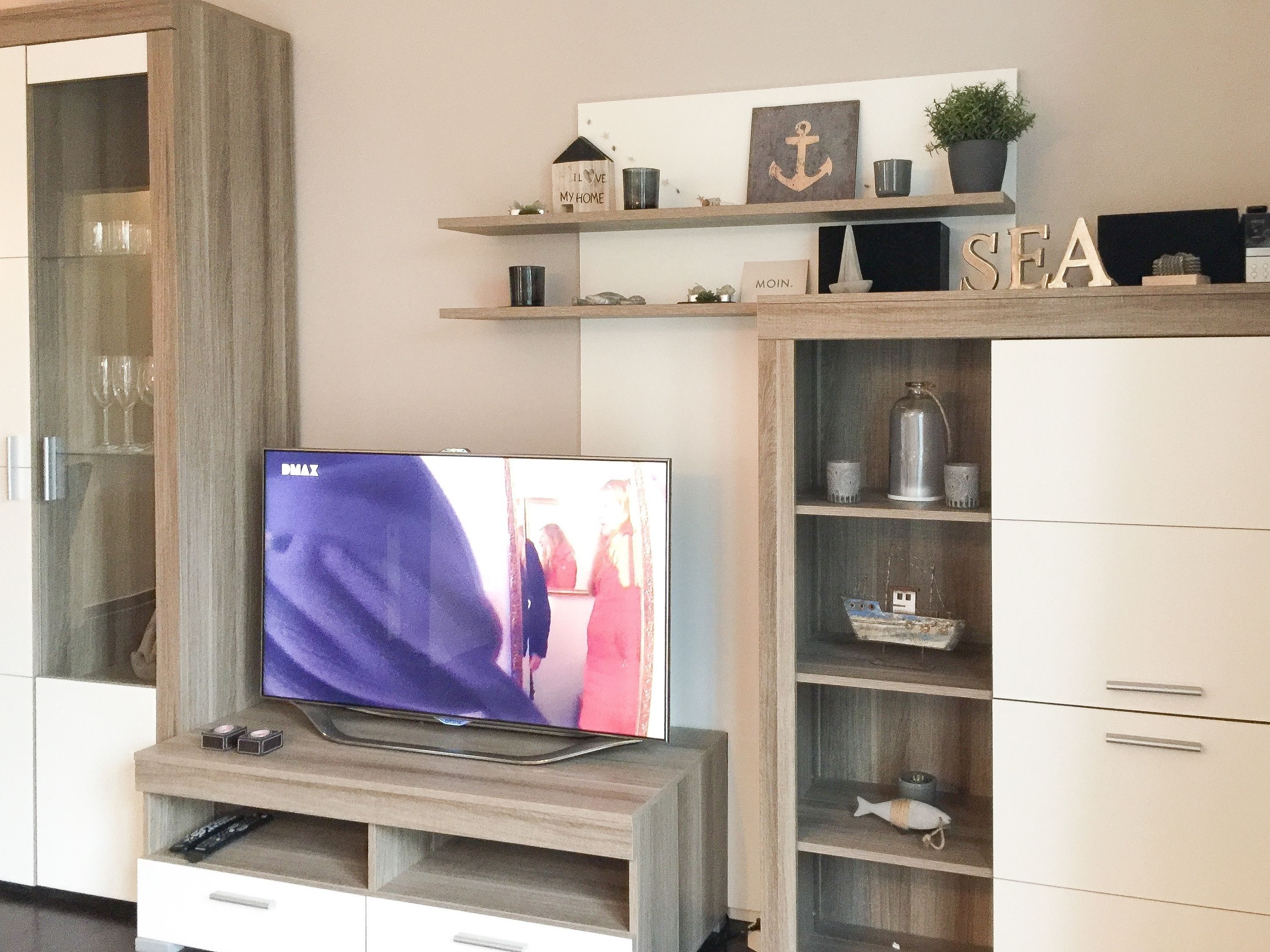 Mit seinen 2 Zimmern bietet es hervorragend Platz für bis zu 4 Personen. Die moderne Inneneinrichtung sowie die dunklen Holzfußböden sorgen für ein äußerst behagliches Wohnambiente. Der gemütliche Wohnbereich ist mit einem ausziehbaren Sofa ausgestattet. Dieses lässt sich schnell zu einem Schlafplatz für zwei weitere Personen umbauen. Die helle Hochglanzküche schließt direkt an den Wohnbereich an. So können Sie auch beim Kochen eines leckeren Essens stets bei Ihren Lieben sein. Das geschmackvoll eingerichtete Schlafzimmer ist mit einem Doppelbett (180x200) sowie einem großen Kleiderschrank eingerichtet. Hier haben Sie ausreichende Möglichkeiten die Urlaubsgarderobe unterzubringen. Liebevoll ausgesuchte Wohnaccessoires runden das maritime Flair dieser Wohnung perfekt ab. Das Bad ist mit einer begehbaren Dusche, Badewanne, Handtuchwärmer und Fußbodenheizung versehen. Für Unterhaltung sorgen zwei TV, ein Bluetooth Lautsprecher mit Radio sowie die kostenlose Nutzung des WLAN, damit Sie auch im Urlaub stets online sein können.