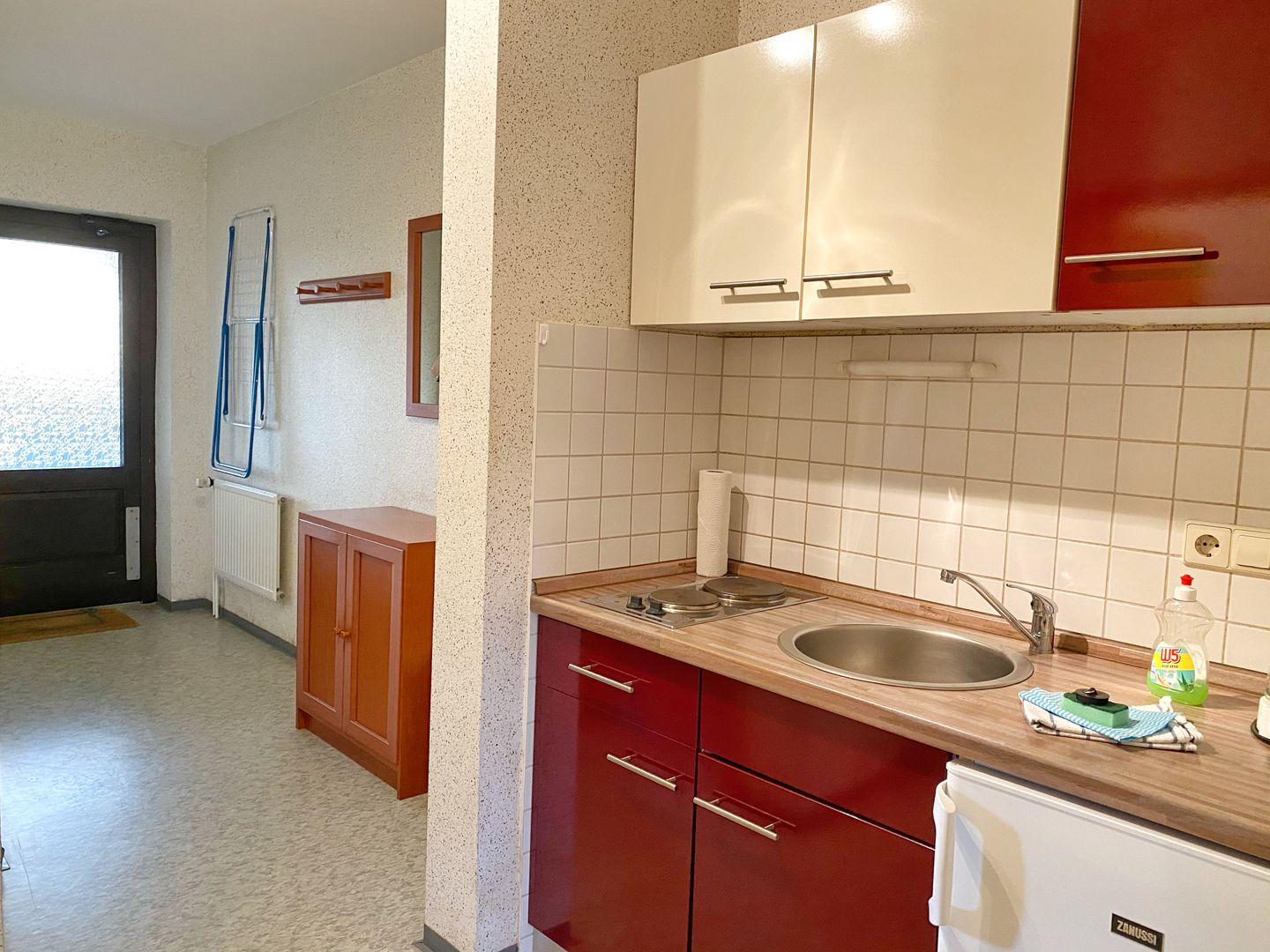 Die gemütliche Ferienwohnung hat eine Grundfläche von ca. 40 m² und unterteilt sich in einen Wohnraum mit Doppelbettcouch, einem Essbereich und Flachbild-TV, ein Schlafzimmer mit Doppelbett und Kleiderschrank, einen Flur mit Miniküche (Kühlschrank, 2 Kochplatten, Kaffeemaschine, Wasserkocher, Toaster) und ein Badzimmer mit Dusche und WC.